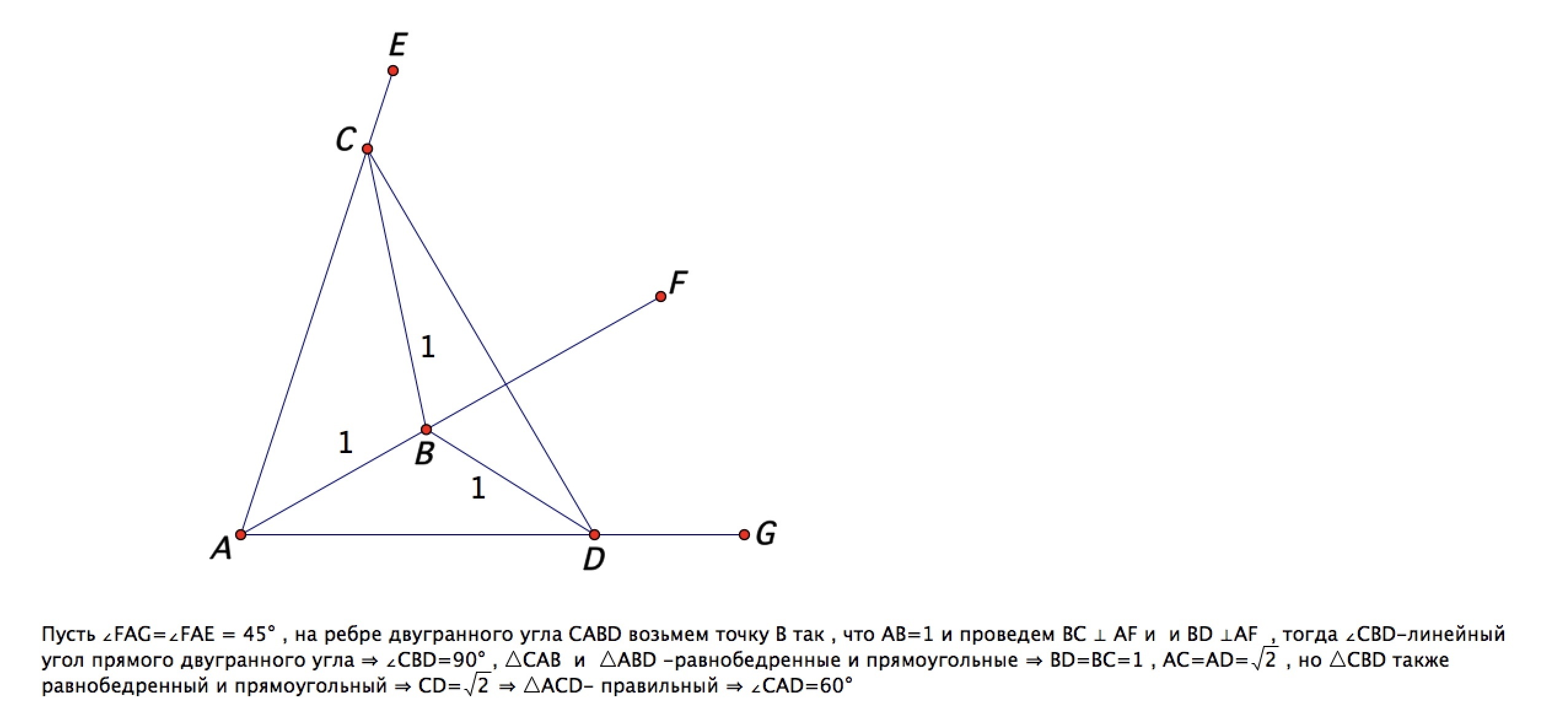 решение становится устным , если использовать теорему косинусов для трехгранного угла