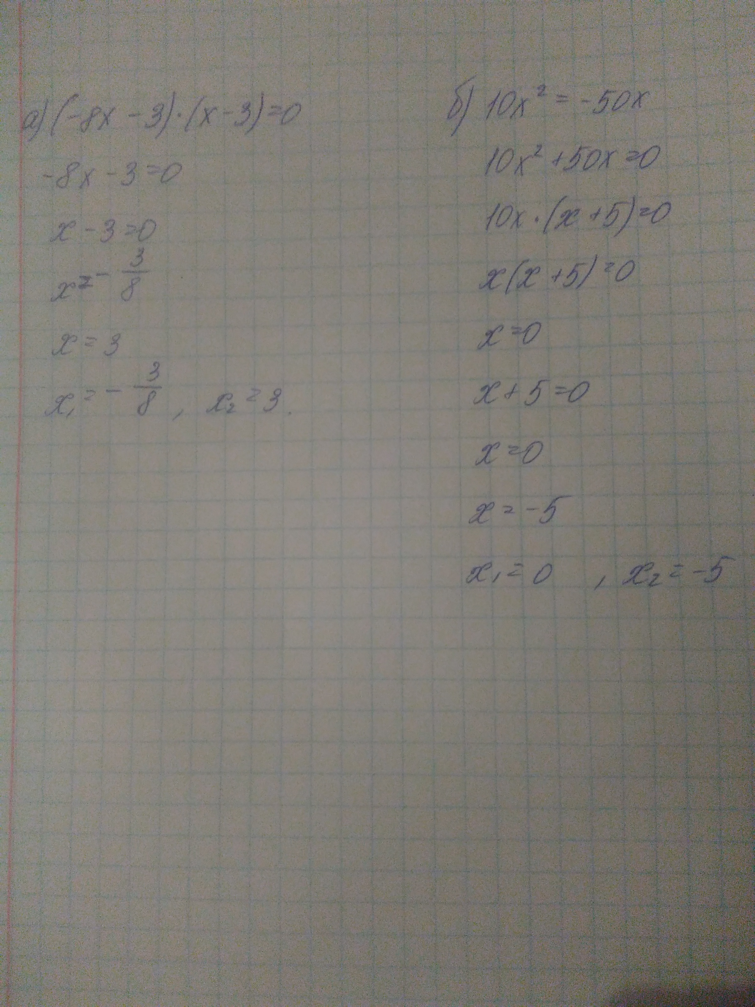 а)(-8х-3)(х-3)=0