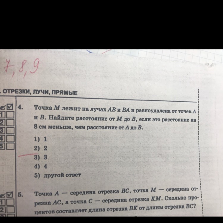 Перефразируем задачу на понятный язык. Существует отрезок АВ, точка М лежит на этом отрезке и делит его пополам. При этом АМ меньше АВ на 8 см. Найти МВ. Пусть расстояние МВ равно "х" см. Тогда, АВ равно "2х" см, т.к АМ = МВ и АМ + МВ = АВ. Зная, что МВ меньше, чем АВ на 8 сантиметров, составляем уравнение. 2х - х = 8 х = 8 Значит МВ = х = 8 см. Получается АВ = 2х = 16 см. 2х = 2 * 8 = 16 Ответ: расстояние МВ равно 8 сантиметров.