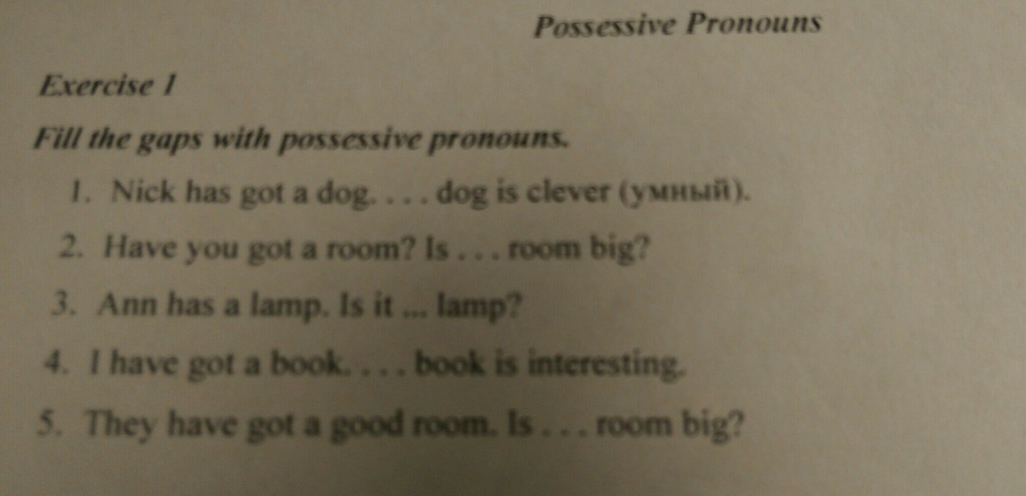 1. his; 2. your; 3. her; 4. my; 5. their