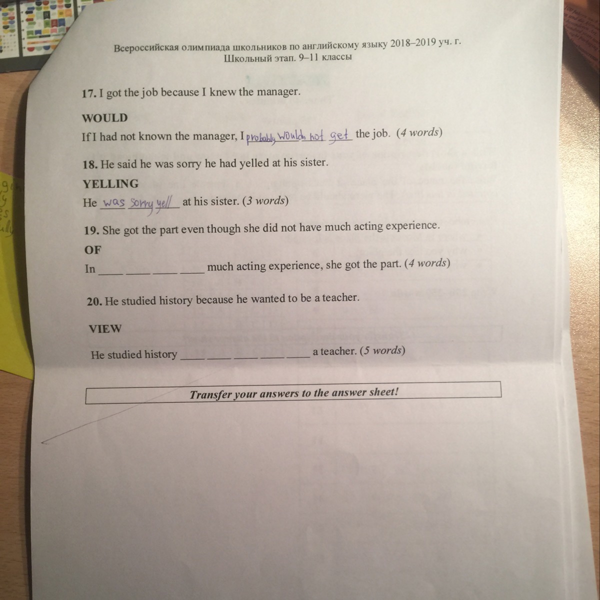 В 20 нужно вставить пять слов, так что все правильно