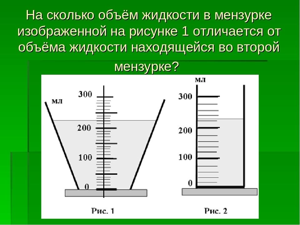 Цена деления у правой мензурки с = 10 см³ : 10 = 1 см³/дел