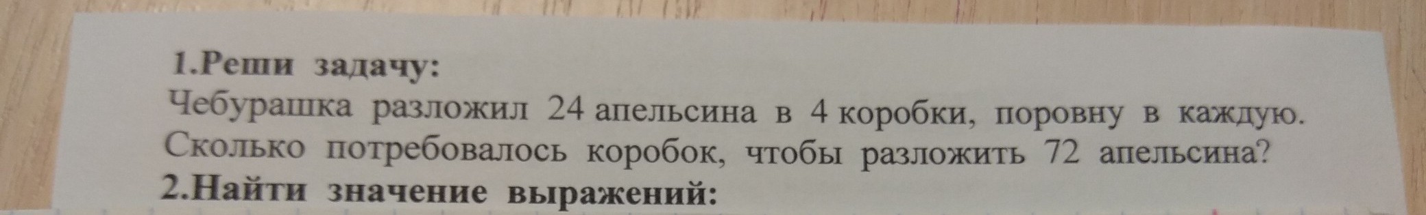 1) 24 : 4= 6- апельсинов в 1 коробке