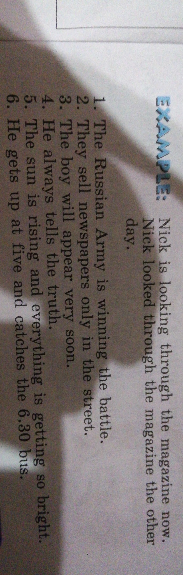 6.He got up at five and caught the bus at 6.30.Он встал в 5.00 и сел в школьный автобус в 6.30.