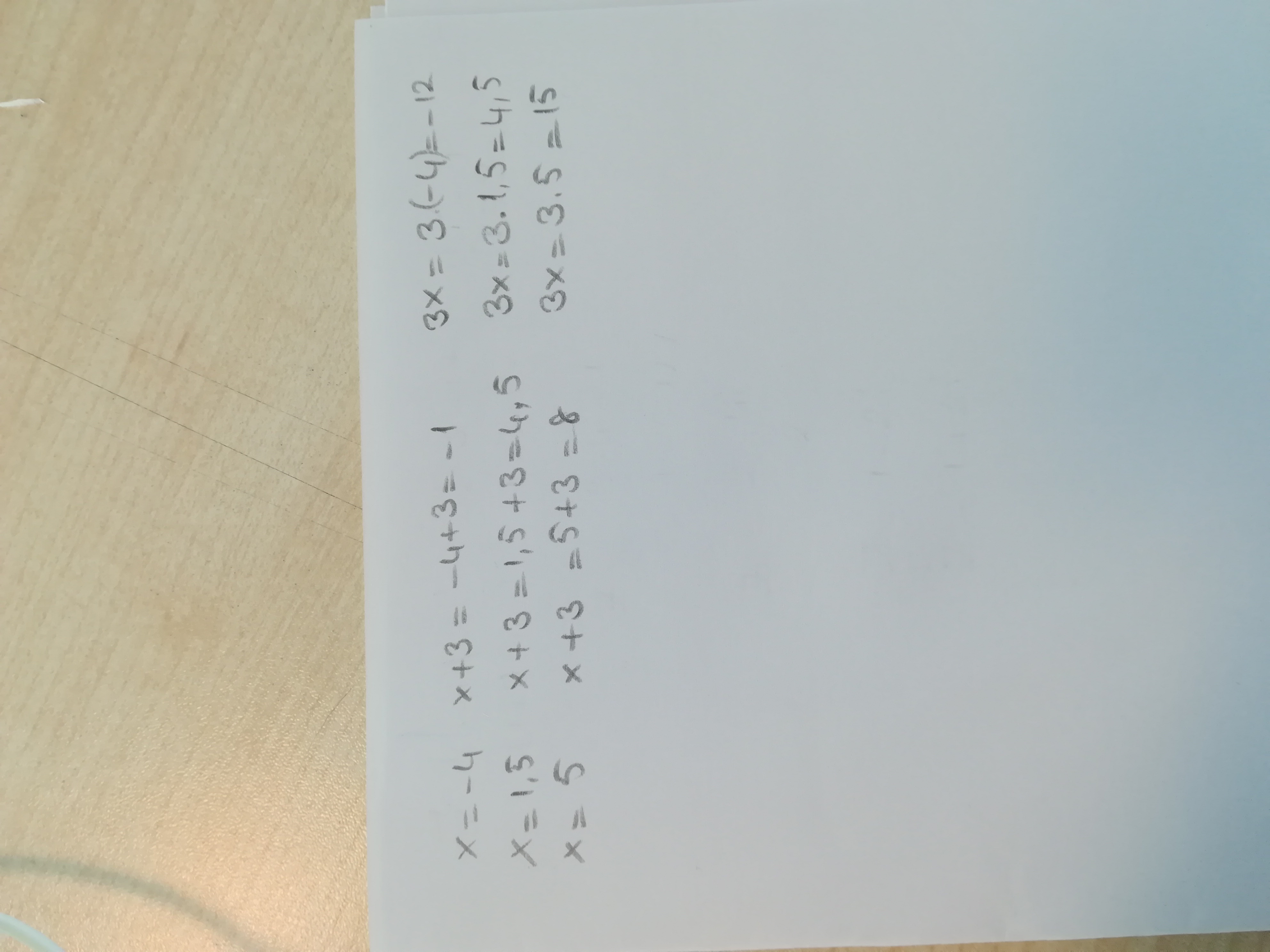 Решите пожалуйста!!! x+3 и 3x x= -4 ; 1,5;5.