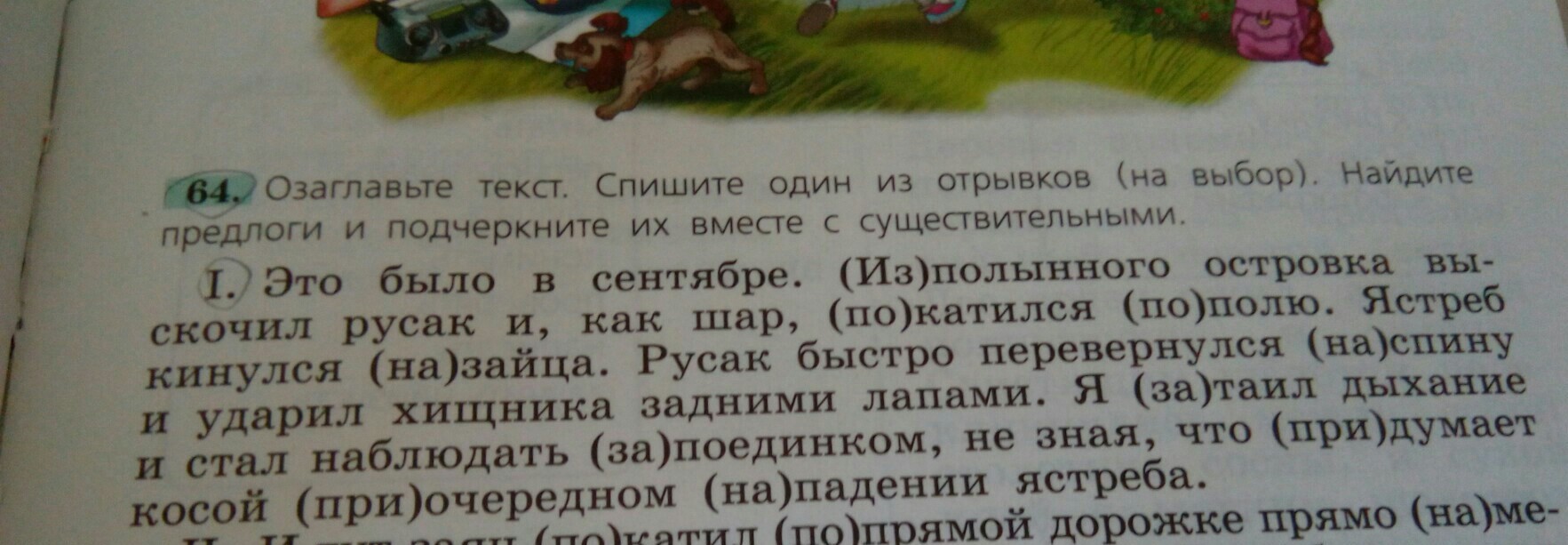 Это было в сентябре. Из полынного островка выскочил русак и, как шар, покатился по полю. Ястреб кинулся на зайца. Русак быстро перевернулся на спину и ударил хищника задними лапами. Я затаил дыхание и стал наблюдать за поединком, не зная, что придумает комой при очередном нападении ястреба.