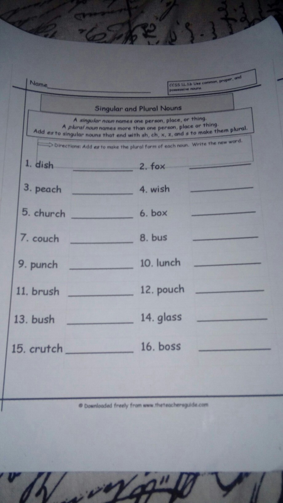 dishes, foxes,peaches, wishes, churches, boxes, couches, punches, buses, lunches, brushes,pouches, bushes, glasses,crutches,bosses
