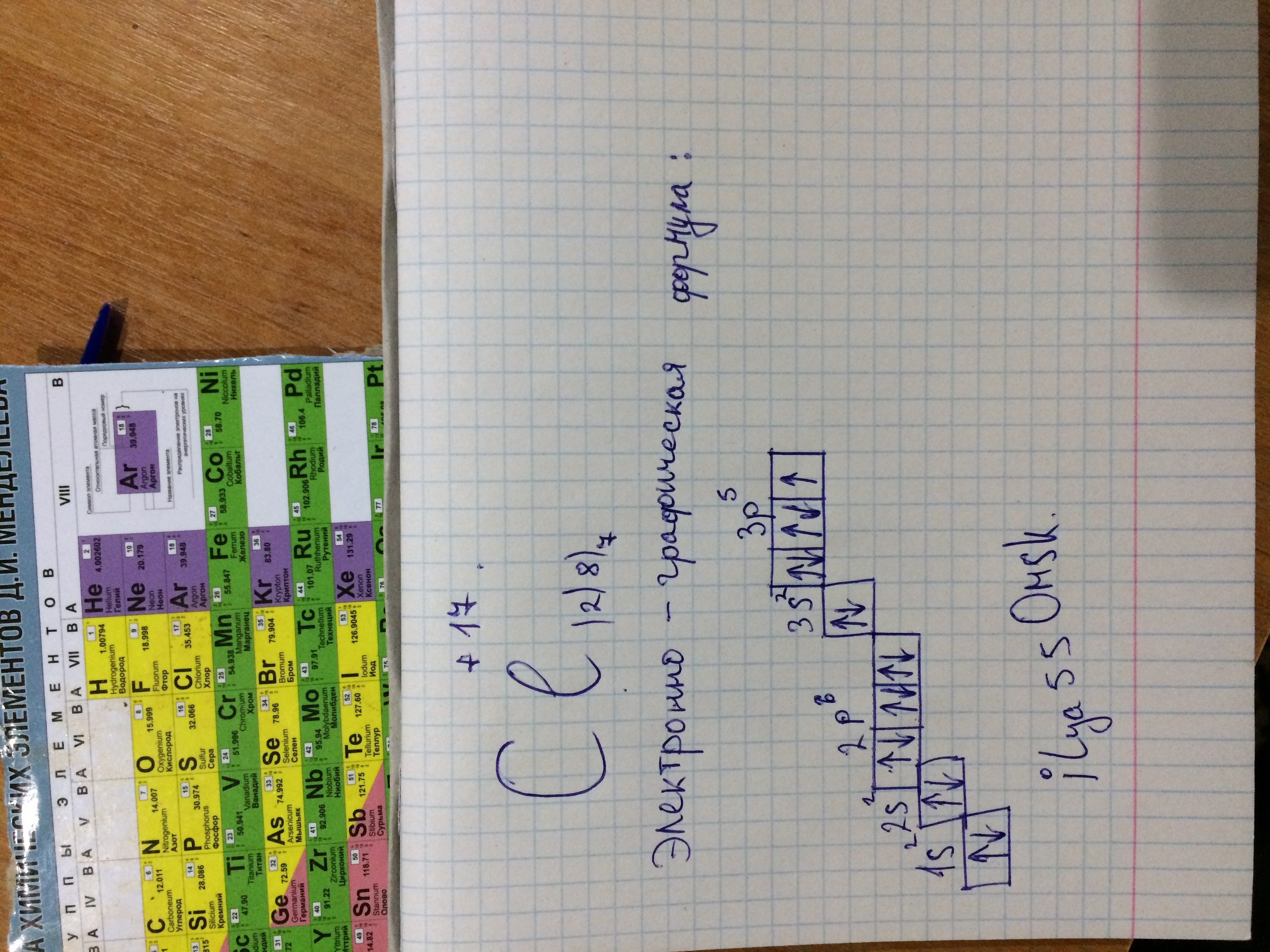 Для начала, найдём элемент с зарядом +17, это номер 17 в таблие Д.И. Менделеева, т.е. Cl(Хлор).