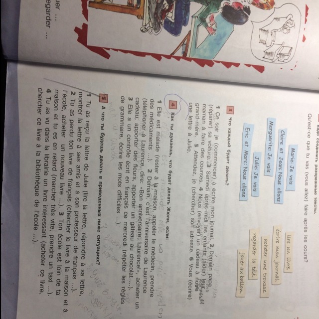 2. Si demain, c'est l’anniversaire de Laurence elle va téléphoner à Laurence, lui dire " Bon anniversaire ", puis elle va acheter un cadeau, ensuite elle va lui apporter des fleurs et lui apporter un gâteau au chocolat.