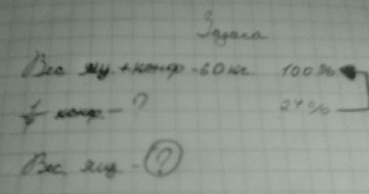 х=24%*60кг/100%=14,4кг-это одна четвертая-1/4