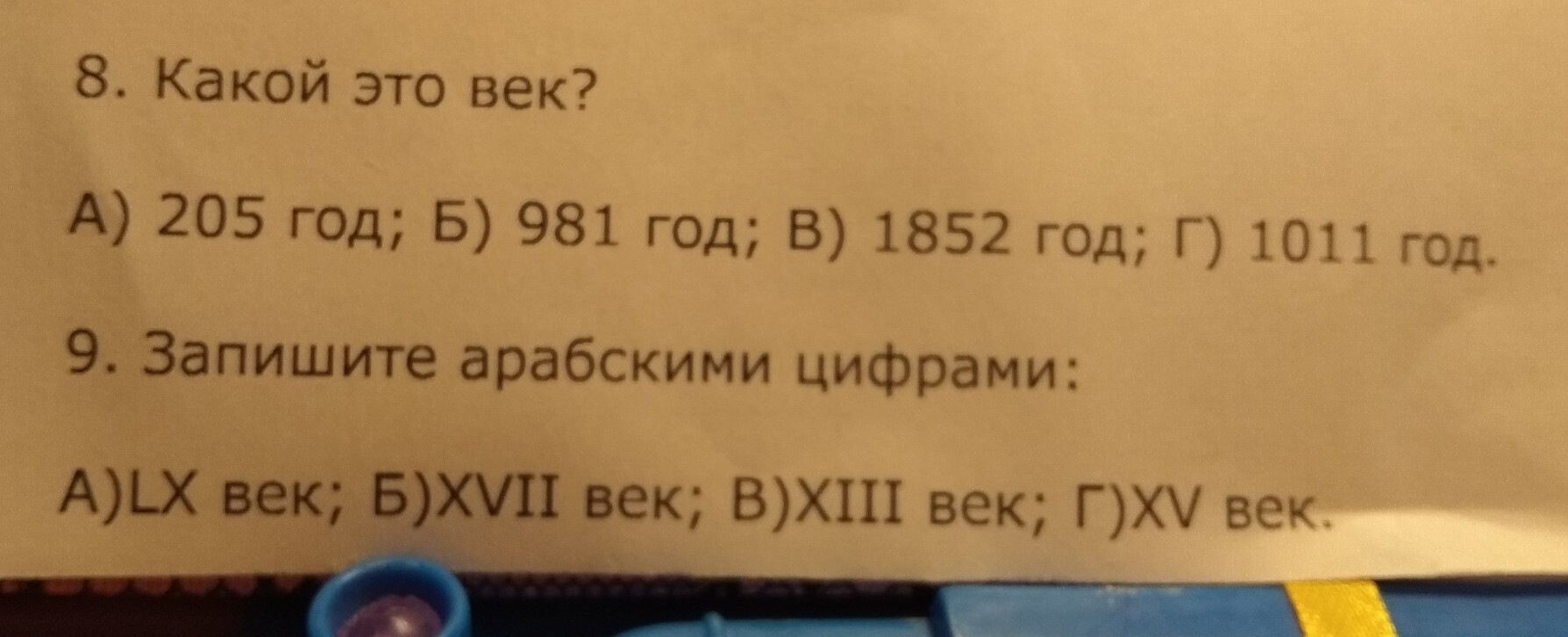 8. А) 3 век, б) 10 век, в) 19 век,г) 12 век