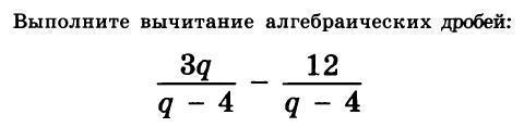 3q/(q-4)-12/(q-4)=(3q-12)/(q-4)=3(q-4)/(q-4)=3 при q≠4
