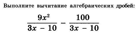 9x^2/(3x-10)-100/(3x-10)=(9x^2-100)/(3x-10)=(3x-10)(3x+10)/(3x-10)=3x+10 при x≠3 1/3