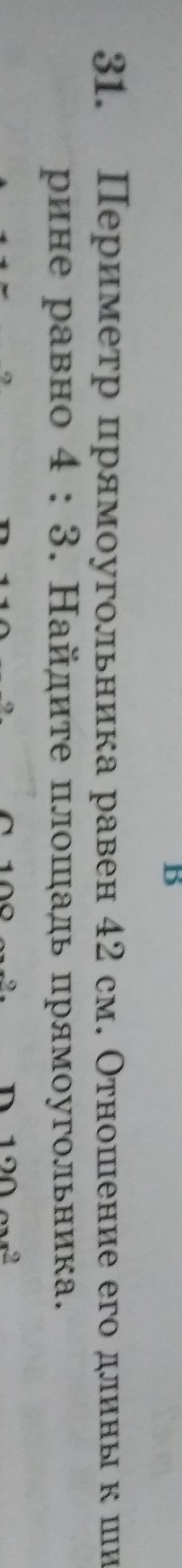 Периметр прямоугольника равен 42 см отношение его длины к ширине равно 4 и 3 Найдите площадь прямоугольника