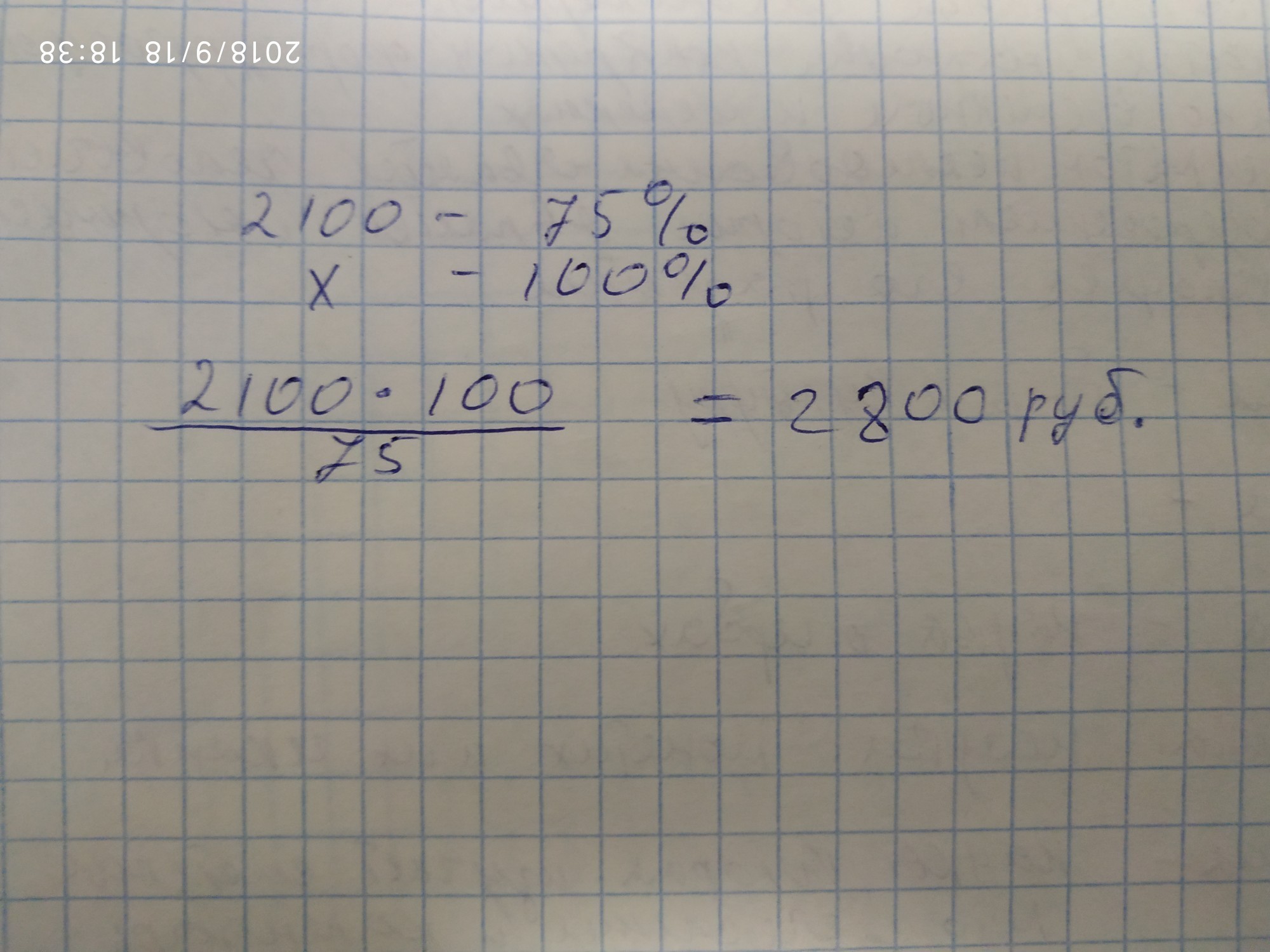 Цена на чайный сервиз была понижена на 25% и составила 2100 рублей. Найдите первоначальную стоимость сервиза.