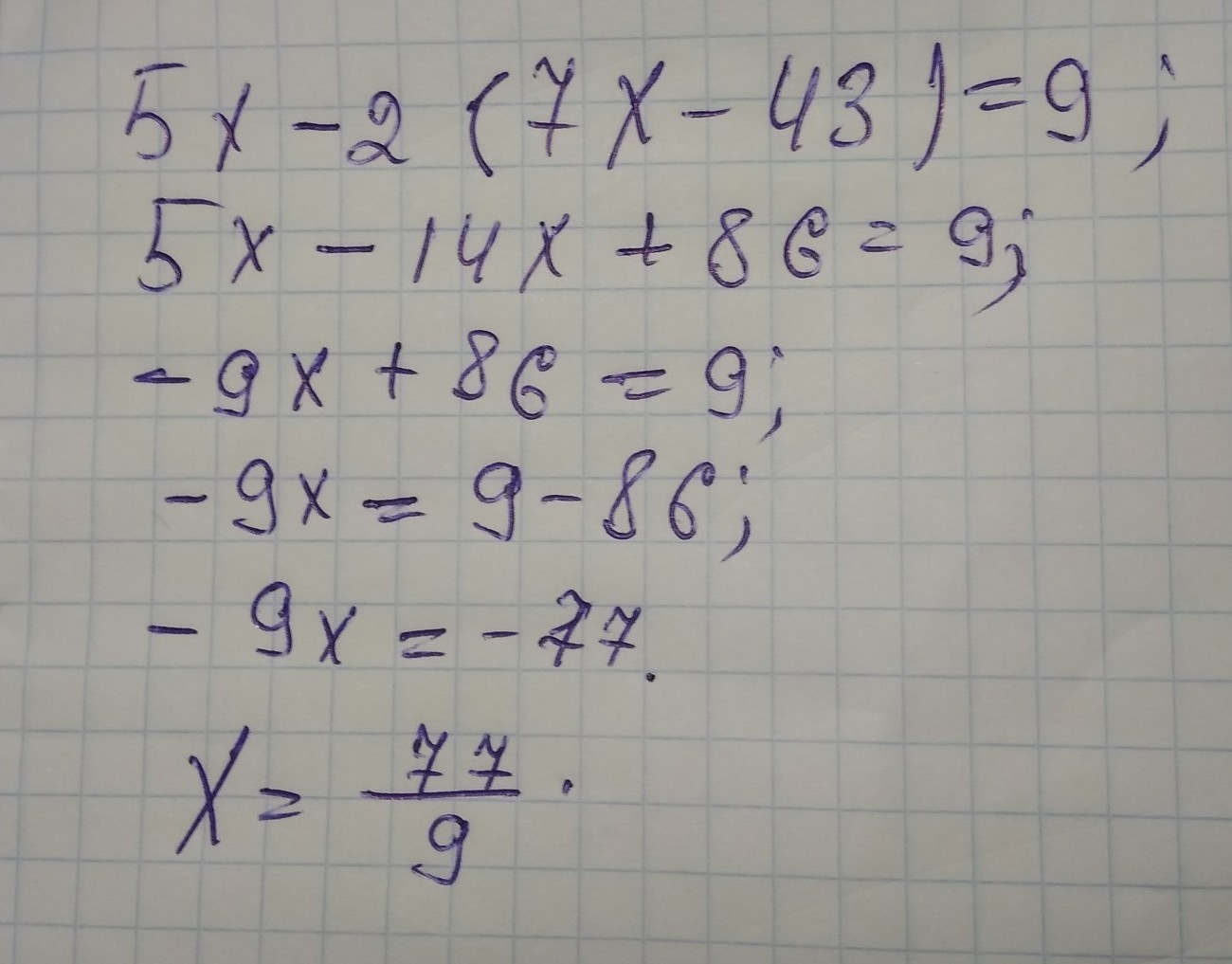 Правильный ответ: х=-77