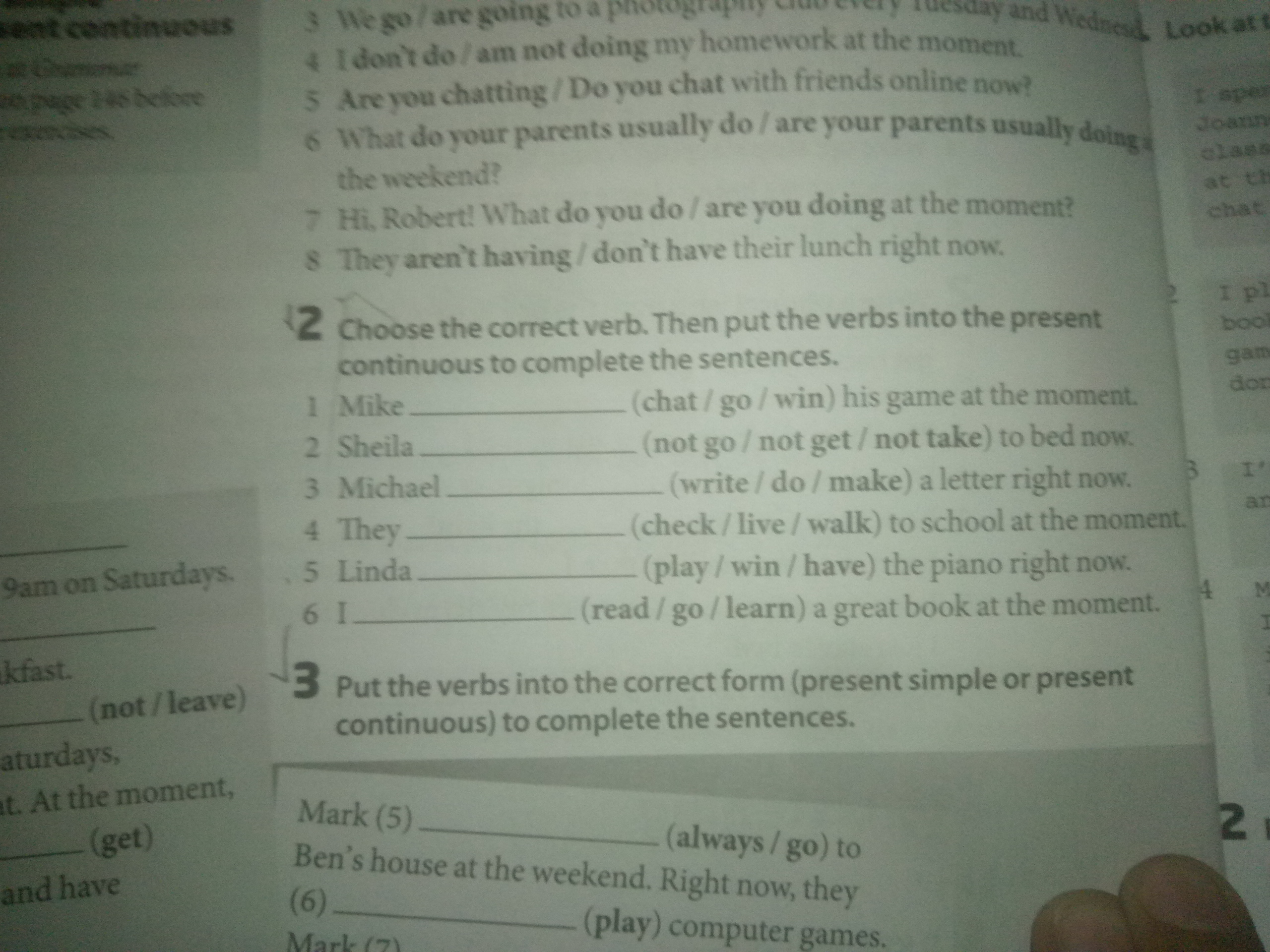 6) do your parents usually do - действия происходят не в данный момент (at the weekend)