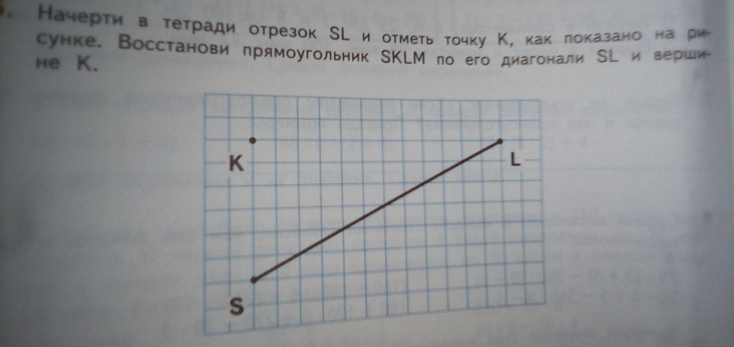 Как я понял надо поставить в тетради точки slk соеженить их и получить треугольник