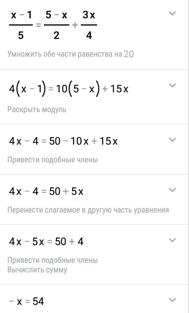 4х - 4 = 50 + 5х