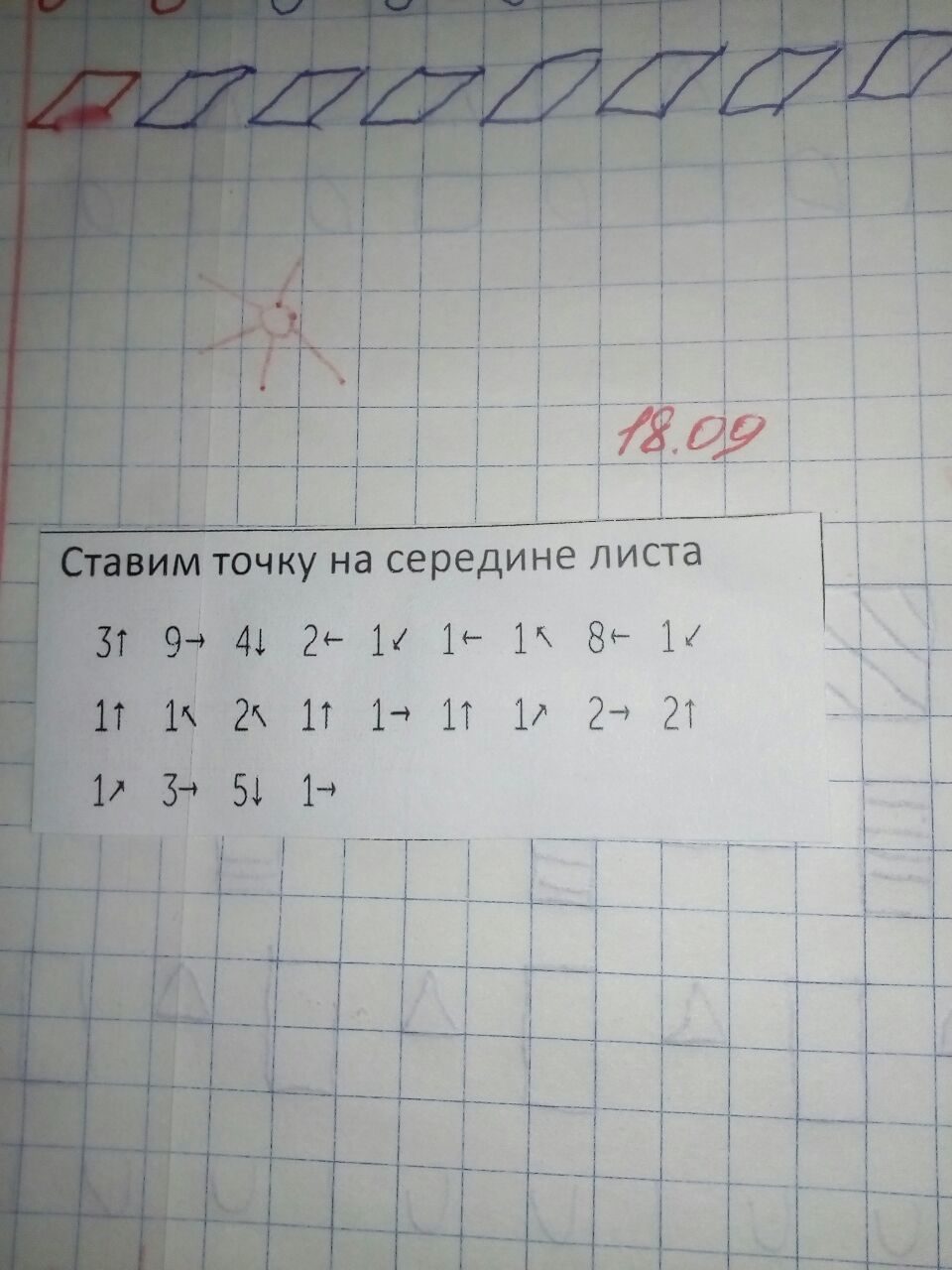 Это легко! Это называется графический диктант. Нужно поставить точку и от нее вести линию в верх 3 клетки, потом 9 направо, потом 4 вниз и так далее:)