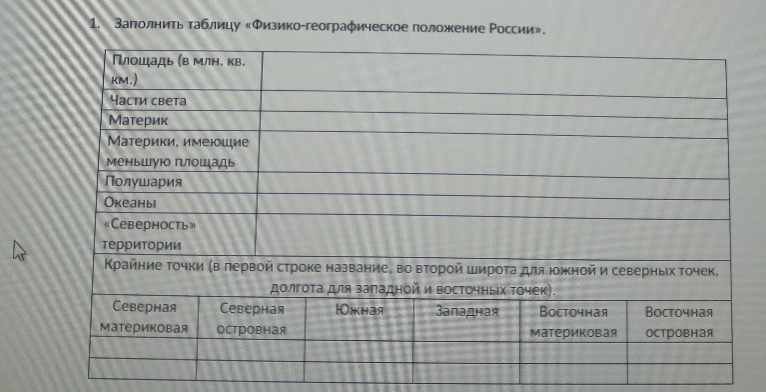 2. Заполнить таблицу «Основные черты экономико-географического положения»