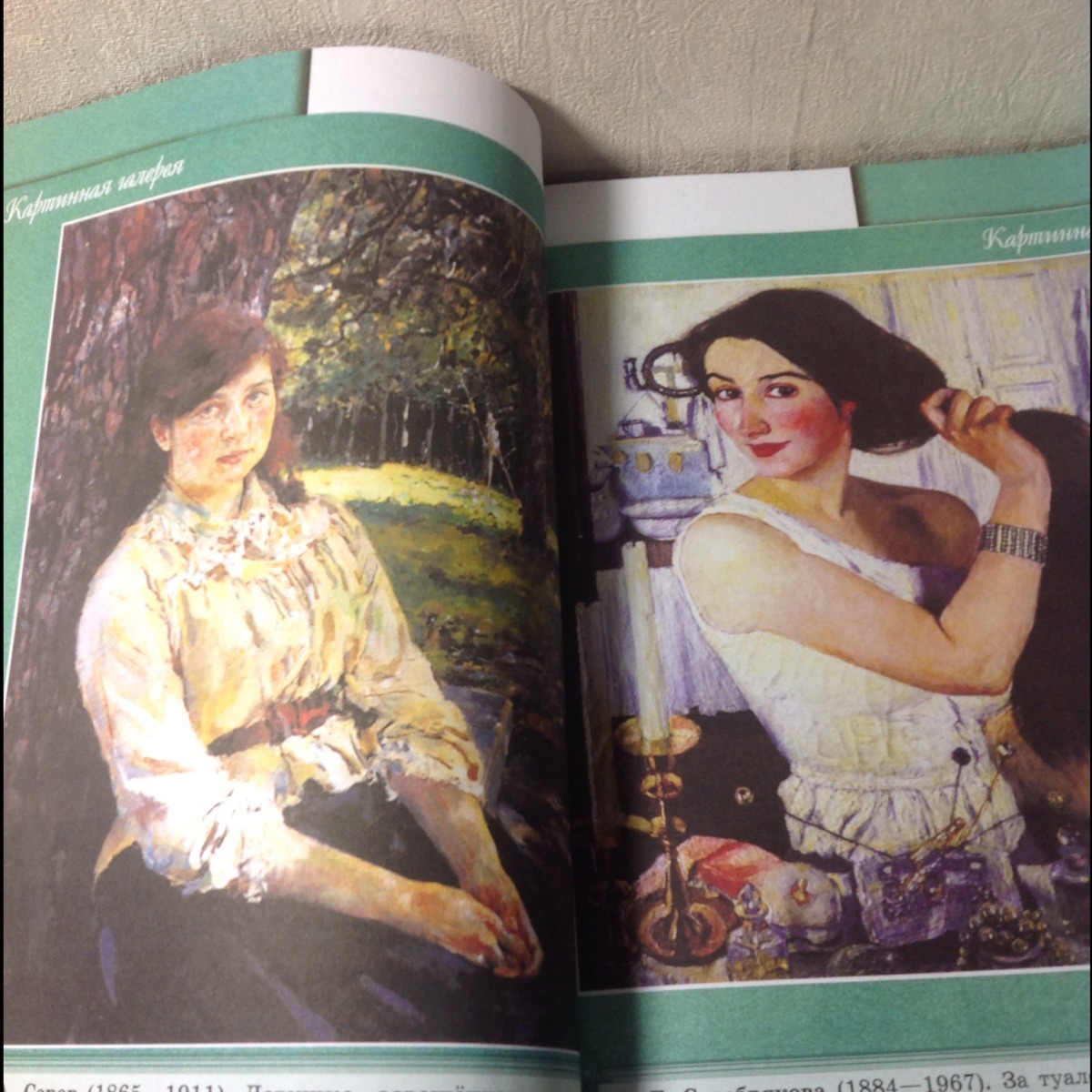 начну с левой,я вижу на этой картине что женщина о чем то задумалась или даже о чем то печалиться,как будто она не чего не делает,просто сидит и думает.