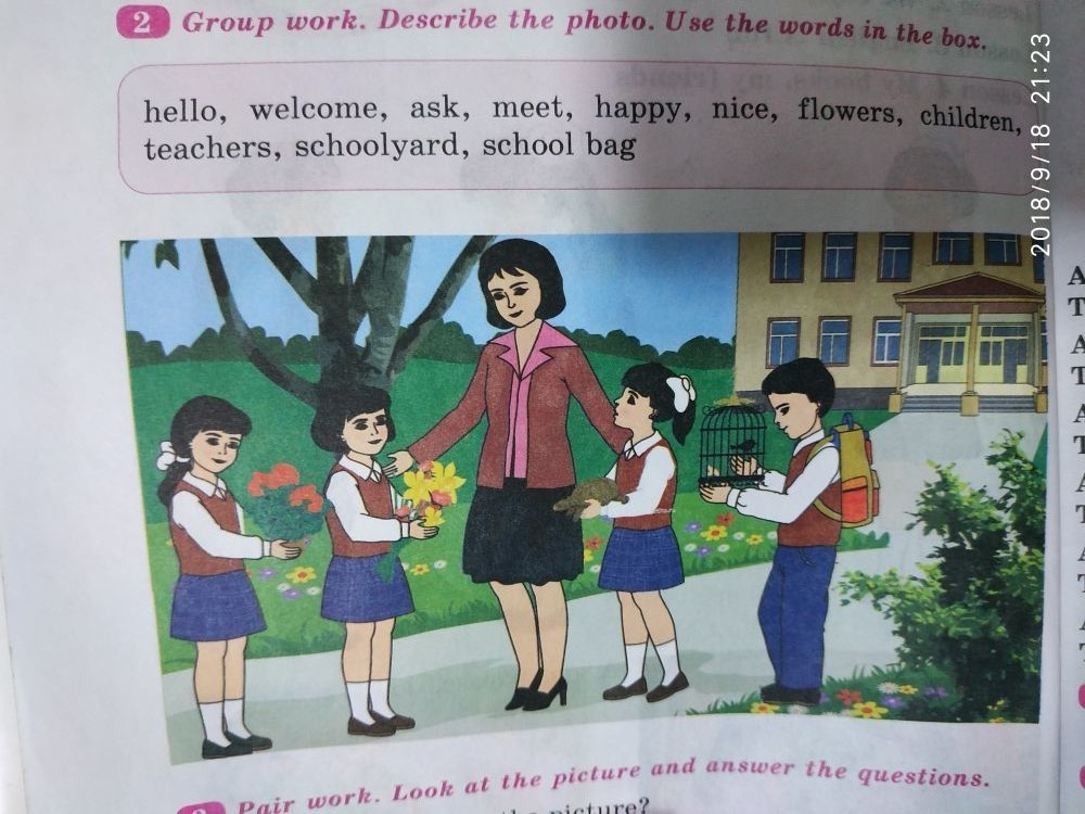 Hello School. We have not seen each other for a long time. I missed you so much. I remember how in the first class I gave my teacher flowers. Our parents photographed us. I really missed you.