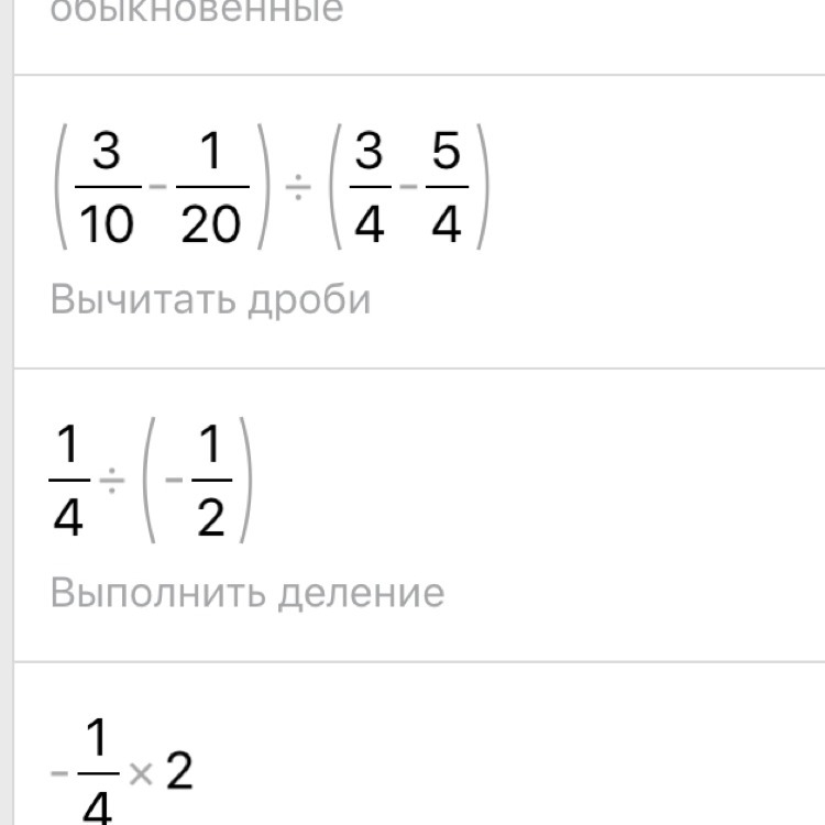 Решение из программы, до первого действия - изначальное произведение, ответ не уместился - -1/2 или -0,5.