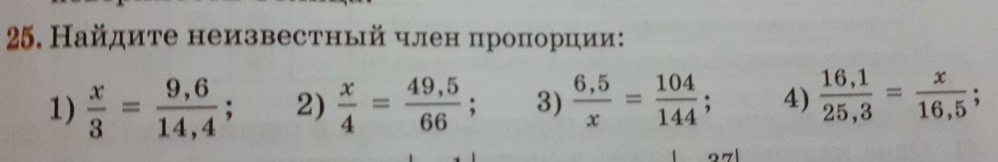4) 25,3х=16,1*16,5; 25,3х=265,65; х=10,5;