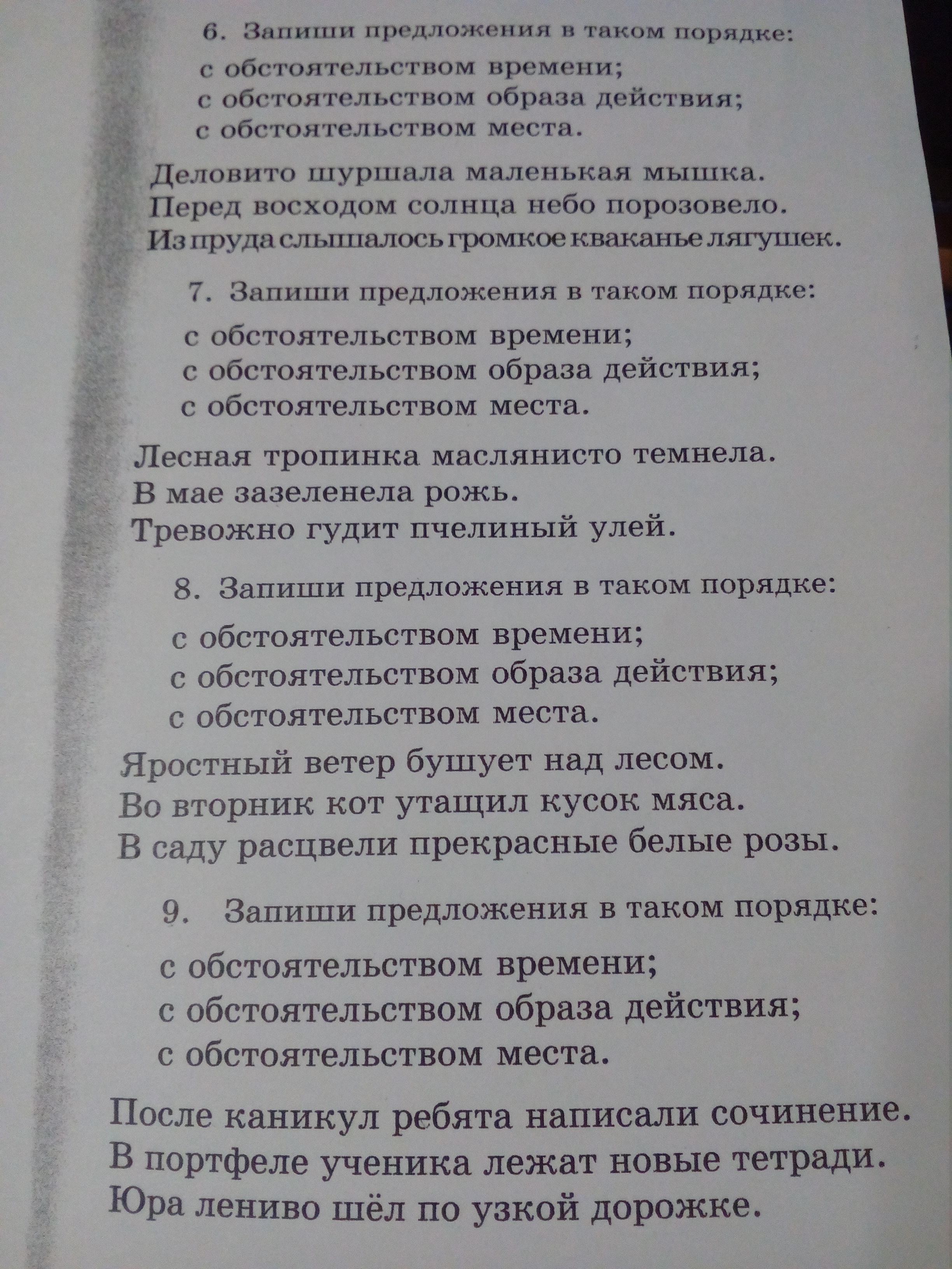 Перед восходом солнца небо порозовело. Деловито шуршала маленькая мышка. Из пруда слышалось громкое кваканье лягушек. В мае зазеленела рожь. Тревожно гудит пчелиный улей. Лесная тропинка маслянисто темнела. Во вторник кот утащил кусок мяса. Яростный ветер бушует над лесом. В саду расцвели прекрасные белые розы. После каникул ребята написали сочинение. Юра лениво шёл по узкой дорожке. В портфеле ученика лежат новые тетради.