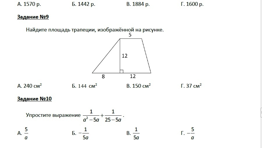 Основание складывается(8+12) и умножает я на высоту(12): 8+12×12=240