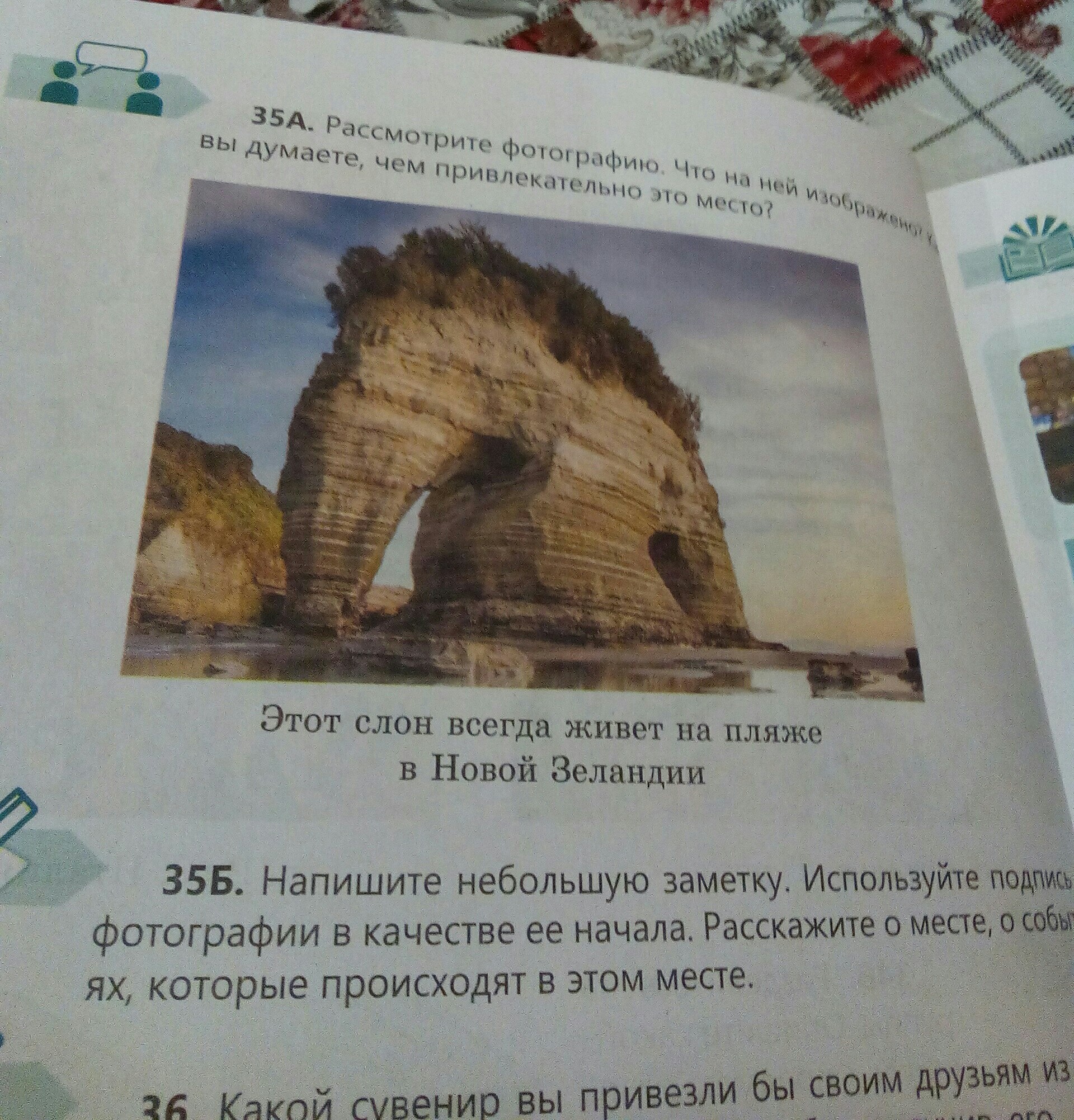 Мы нашли очень большую скалу напоминающего на слона.Этот слон всегда живет на пляже в Новой Зеландии.Рядом с ним несколько луж,значит рядом есть море.Сюда приходят очень много туристов чтобы сфоткаться с ним.На верхушке слона есть немного трав.Смотря на него модно увидеть хобот,и две ноги