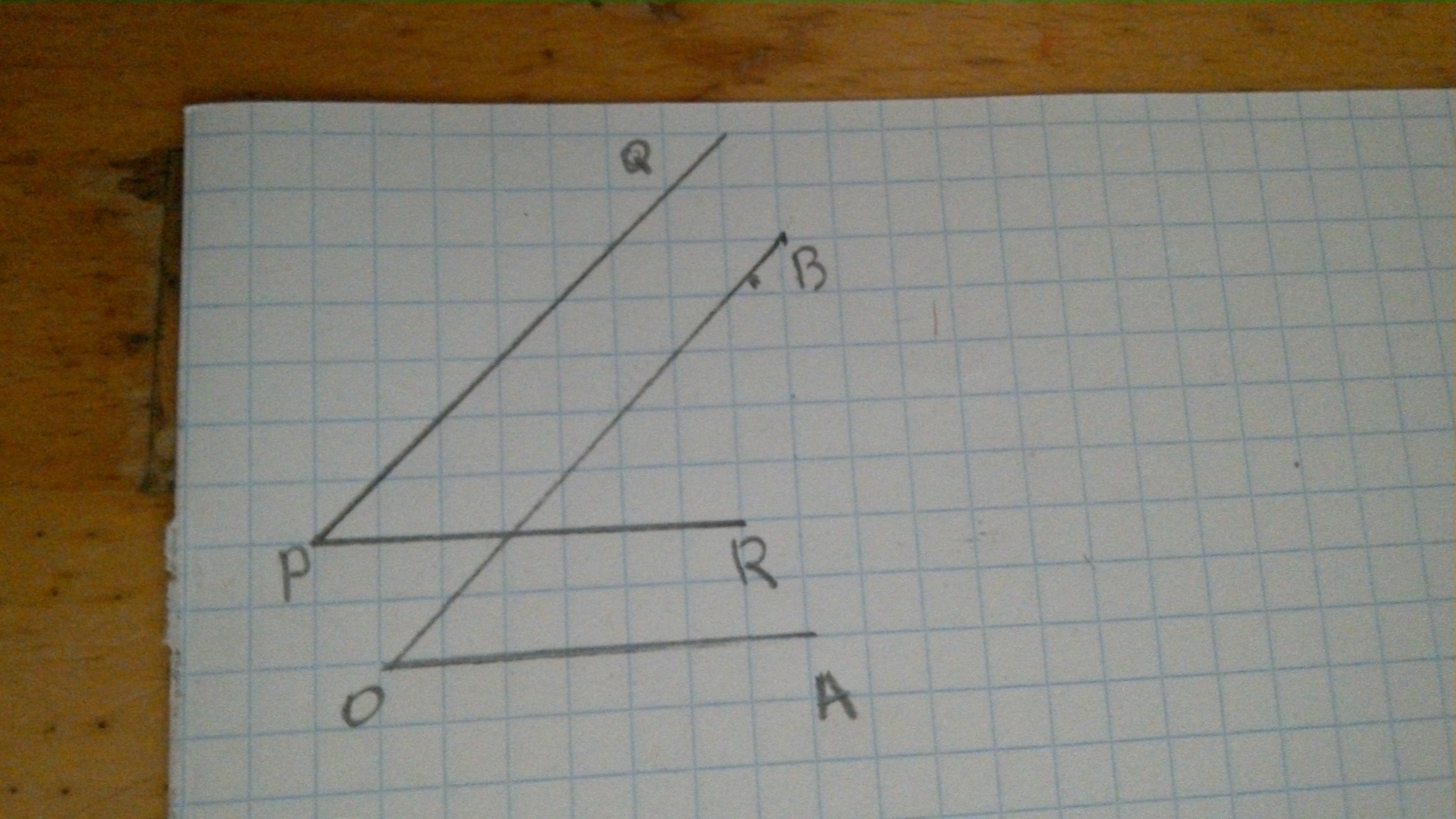 Нужно к рисунку дать пояснение: - почему построенный угол QPR=углу АОВ, т.е. на чём основывается равенство этих углов.