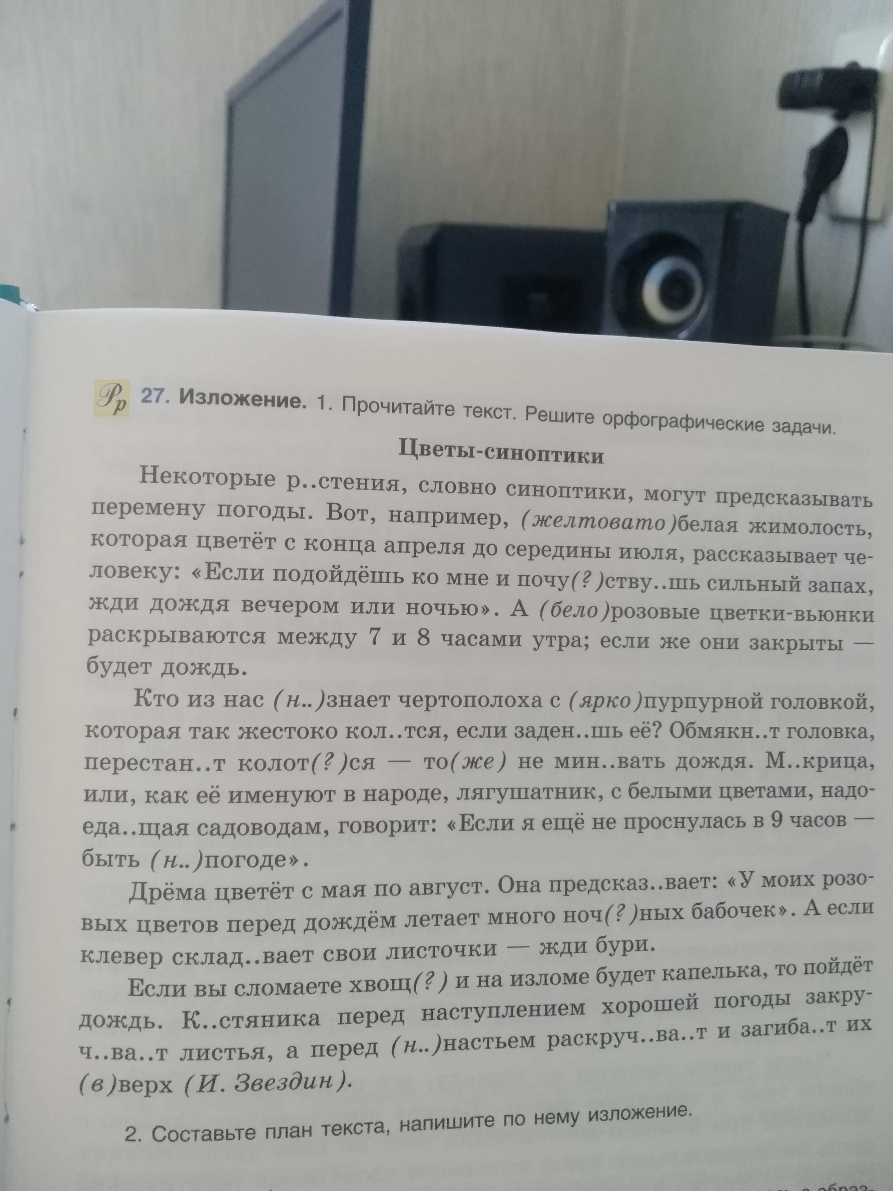 Некоторые растения могут предсказывать перемену погоды.Жди дождя и непогоды если :почувствуешь сильный запах цветков желтовато-белой жимолости, увидишь что бело-розовые цветки вьюнки утром закрыты, колючая ярко-пурпурная головка чертополоха обмякла, а белые цветы мокрицы к девяти часам ещё не проснулись - быть непогоде.Заметишь что у розовых цветов дрёмы летает много ночных бабочек,если клевер складывает свои листочки,увидишь на изломе сломанного хвоща капельку, а костяника закручивает свои листья и загибает их вверх - быть дождю.
