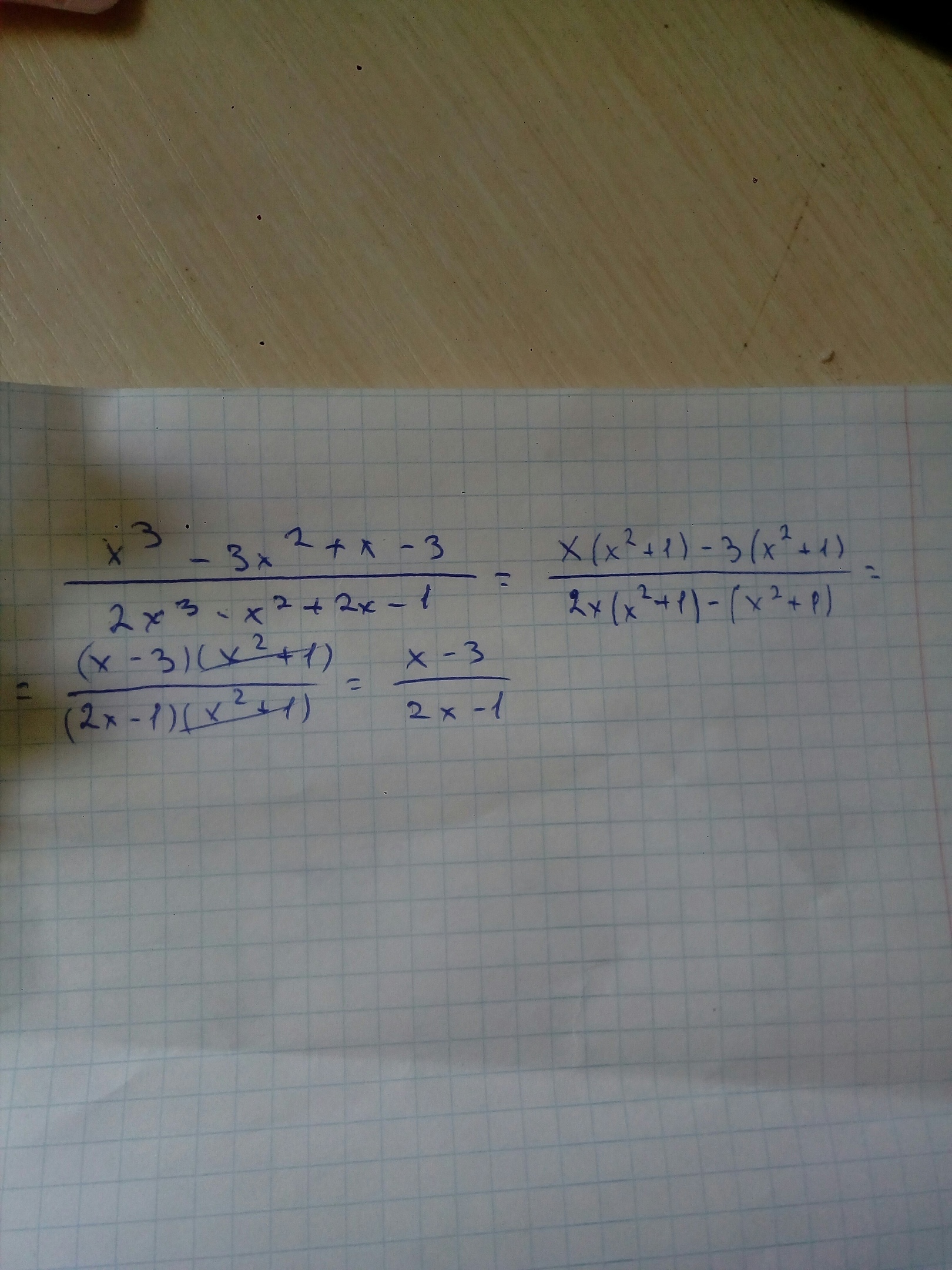 = ((х³ - 3х²) + (х - 3)) / ((2х³ - х²) + (2х - 1)) =