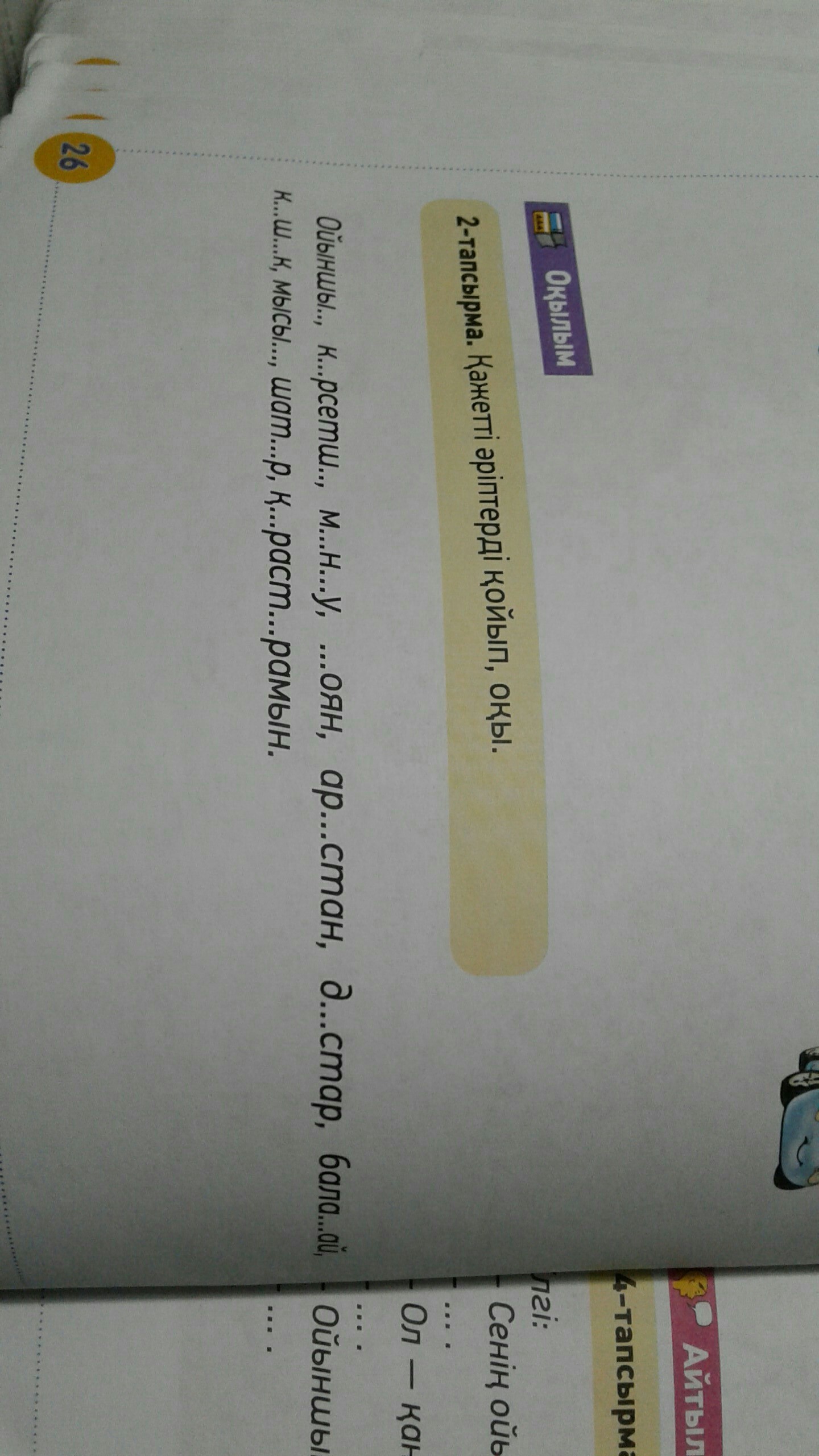 Ойыншық,көрсетші,мынау,қоян,арыстан,достар,балақай,күшік,мысық,шатыр,қарастырамын.
