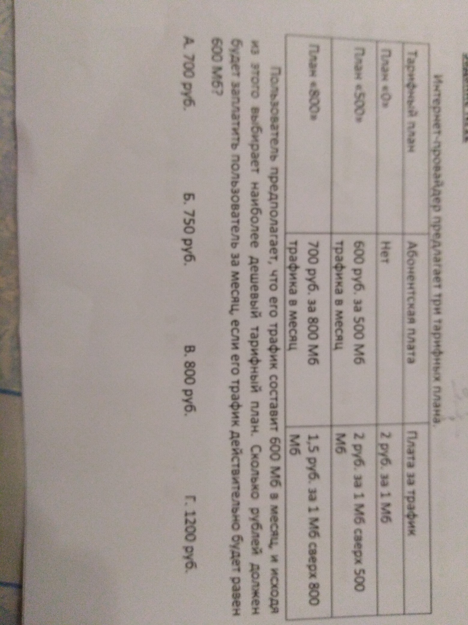 план 800 - 700 руб. в месяц
