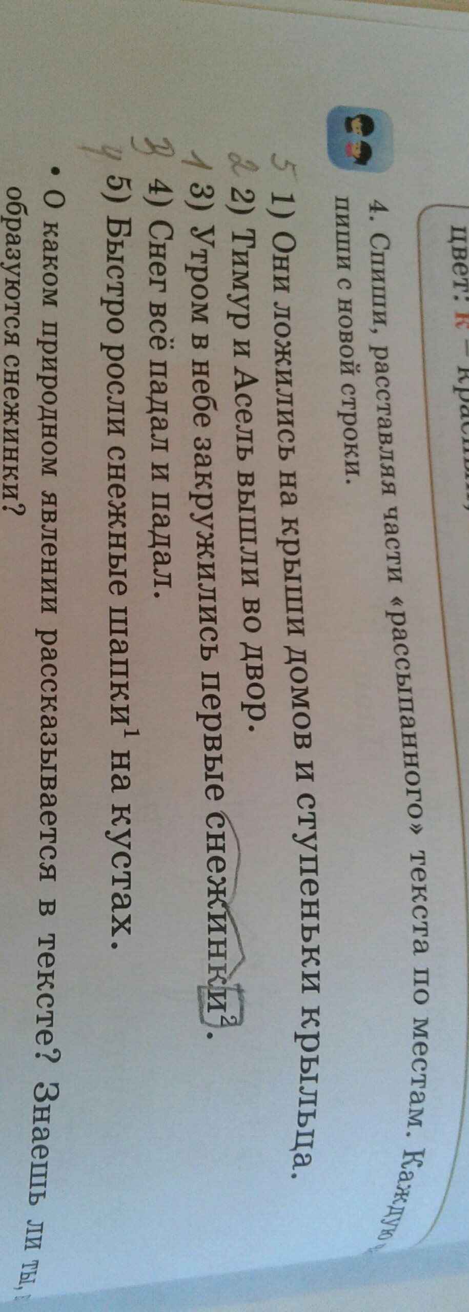 Порядок расставлен правильно, а рассказывается о снегопаде