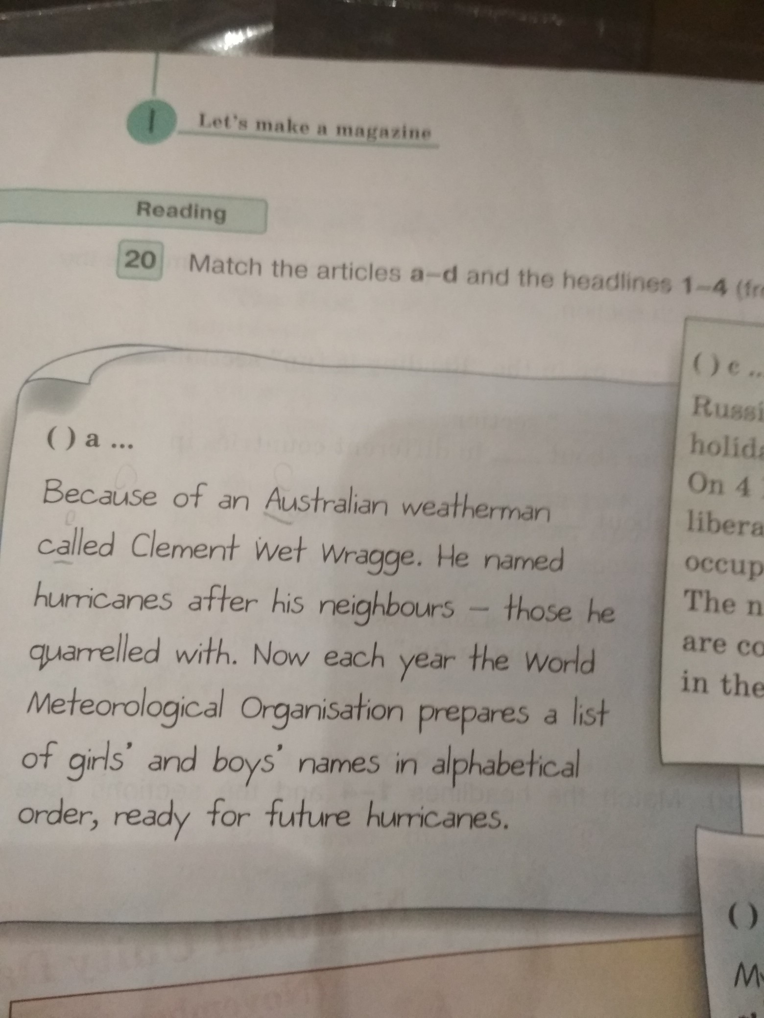 Из-за Австралийского метеоролога Клемента Уэт Уэрреджа. Он называл ураганы именами своих соседей - тех, с кем он поссорилля . Теперь каждый год Всемирная Метеорологическая Организация готовит список имён девочек и мальчиков в алфавитном порядке, готовый на случай будущих ураганов.