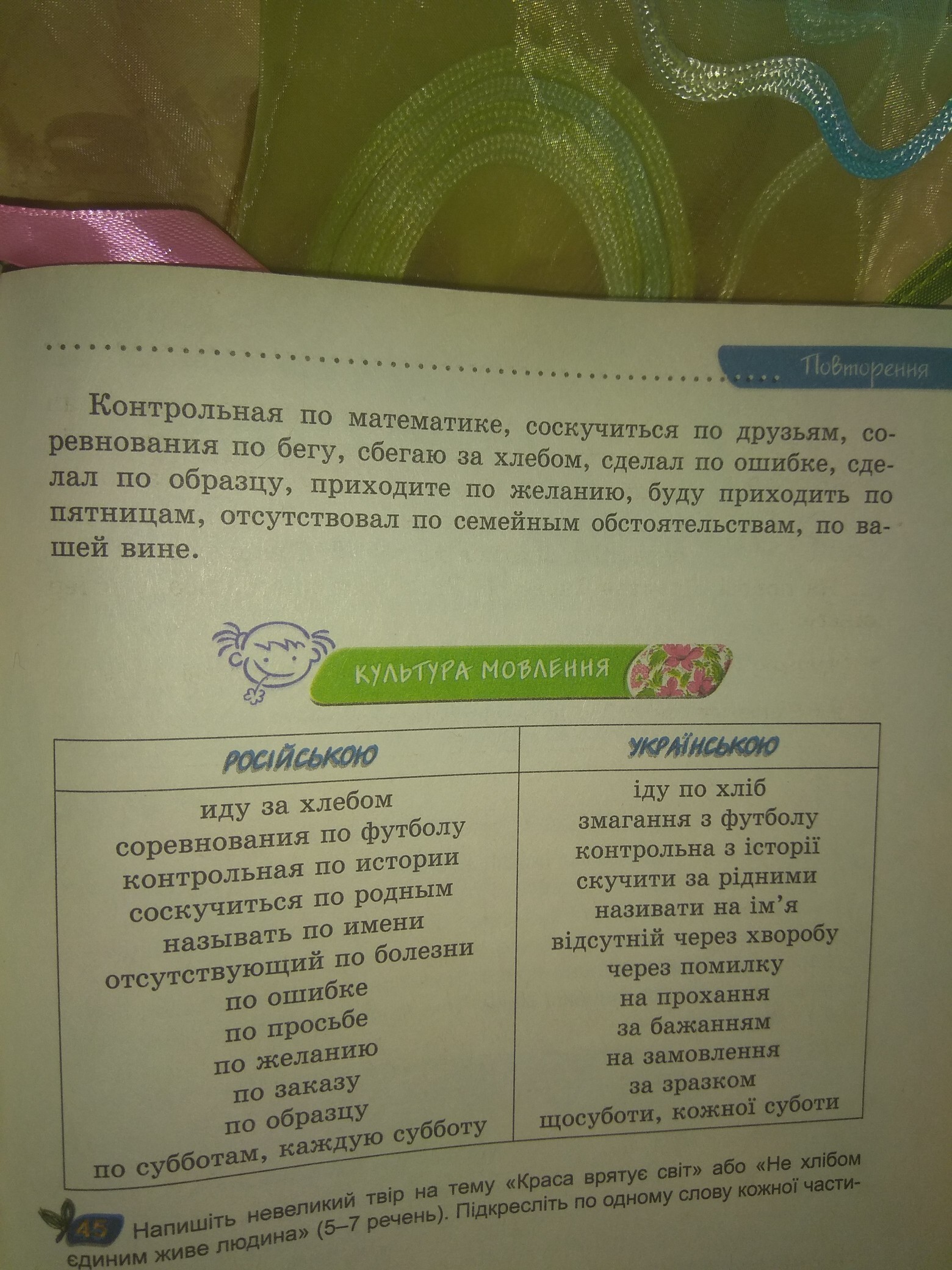 Контрольна робота з математики, Сумувати за друзями, Змагання з бігу, Побіжу за хлібом, Зробив помилково, Зробив за зразком, Приходьте за бажанням, Буду приходити щоп'ятниці, Був відсутній у зв'язку з сімейними обставинами, з вашої провини.
