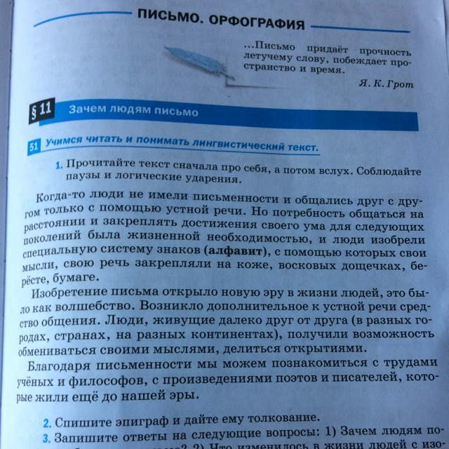 Осн. мысль: письменность дала людям возможность общаться на расстоянии.