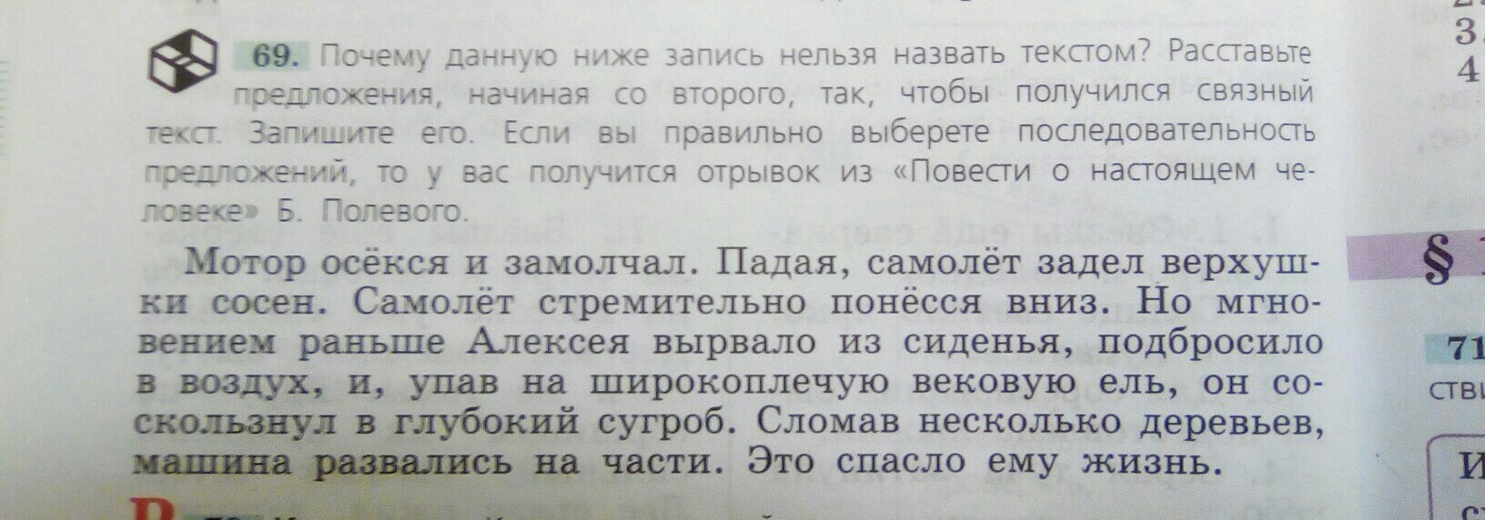 В задании имеется ввиду, то что ты должна объяснить почему это не текст и поставить предложения начиная со 2 в правильном порядке)