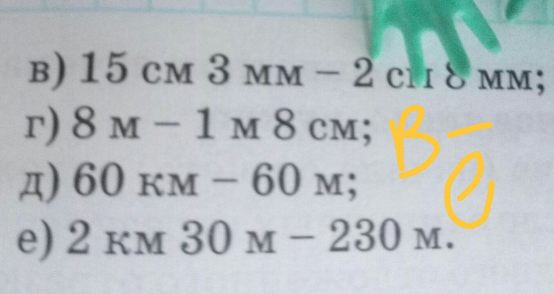 15 см 13мм-2см 8 мм=13 см 5мм 7м 100см-1м 8см= 6м 92см 60000м -60м= 5940м 2030м -230м= 1800м