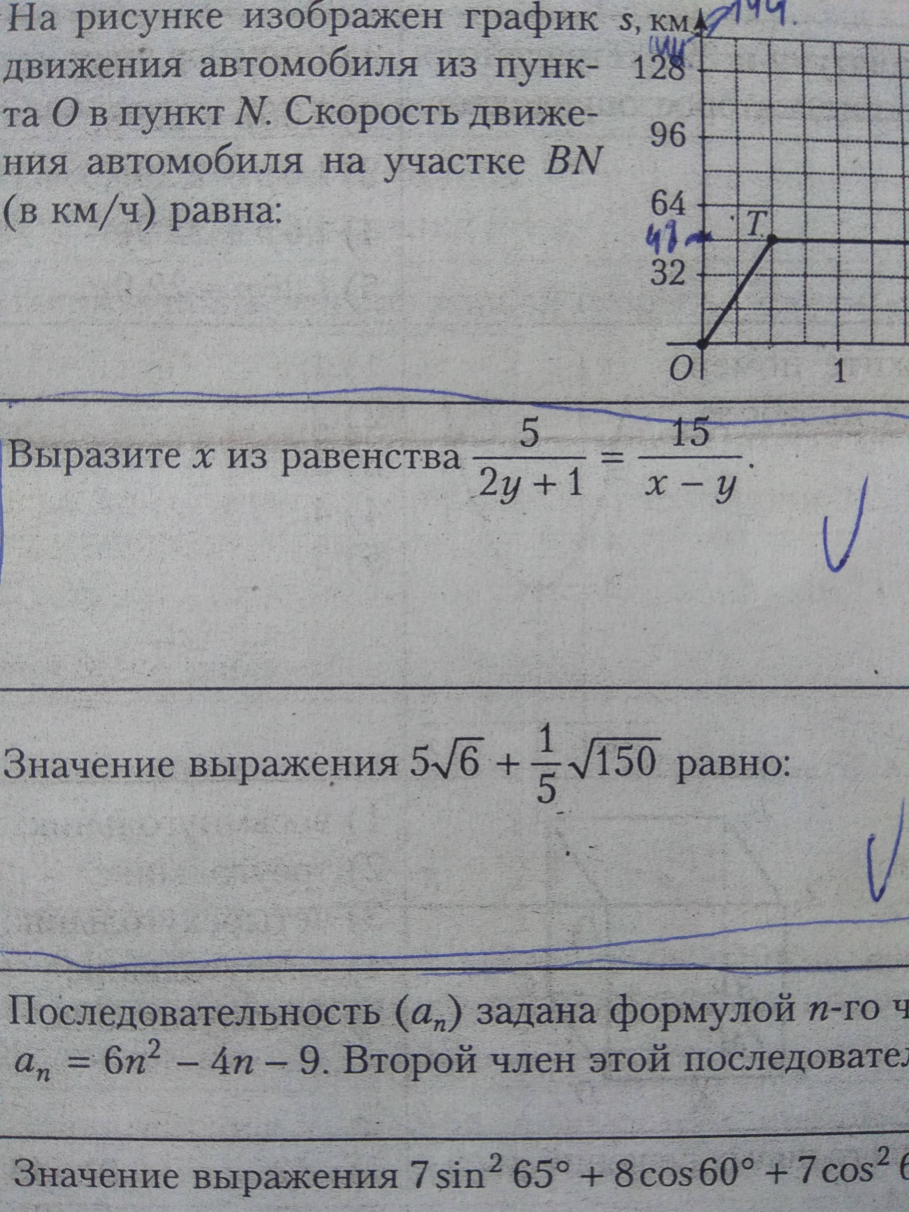 1) frac{5}{2y+1} =frac{15}{x-y}\\5(x-y)=15(2y+1)\\x-y=3(2y+1)\\x=6y+3+y=7y+3\\\2)5sqrt{6}+frac{1}{5}sqrt{150}=5sqrt{6}+frac{1}{5}sqrt{25*6}=5sqrt{6}+frac{1}{5}*5sqrt{6}=5sqrt{6}+sqrt{6}=6sqrt{6}