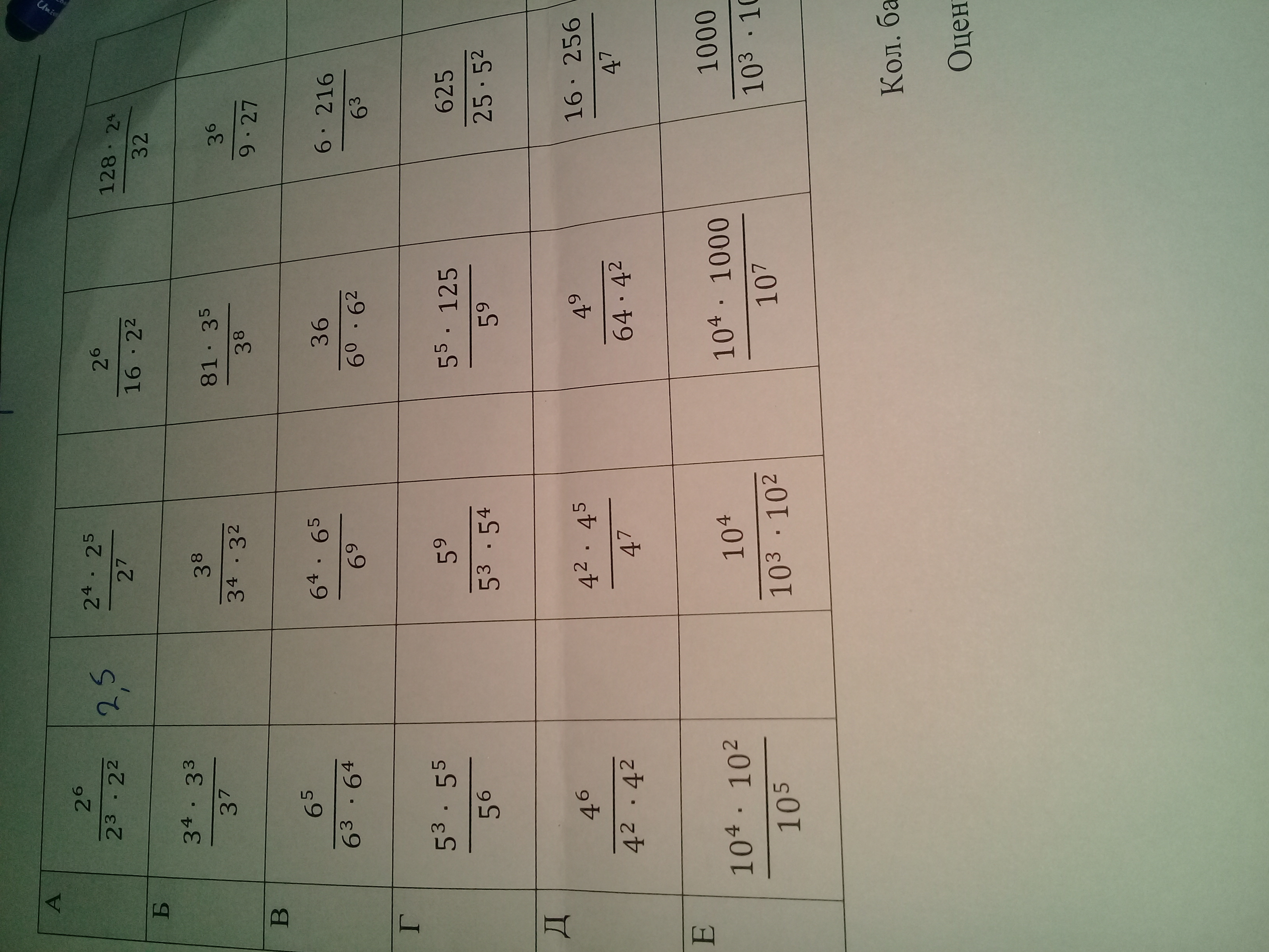 г) 5 в 2 степени , 5 в 2 степени ,5 в -1 степени , 5