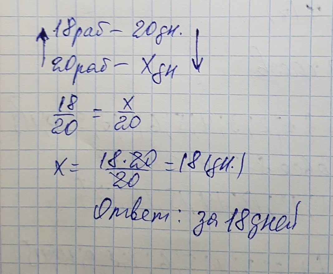 Работы по покраске в новом доме закончили 18 рабочих за 20 дней. На сколько дней выполняют окрасочные работы с такой производительностью 20 рабочих
