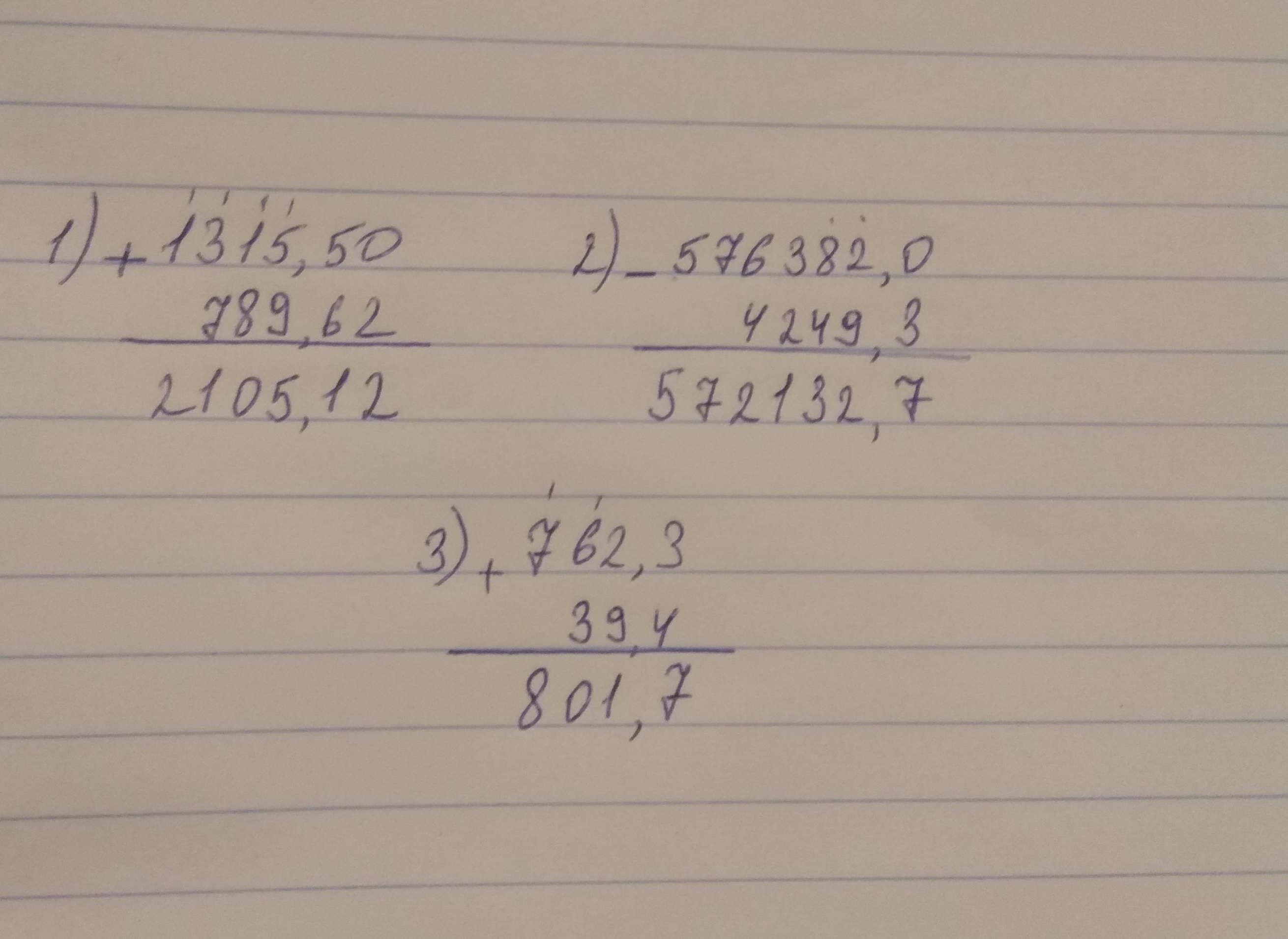 1) 2105,12 2) 572132,7 3) 801,7