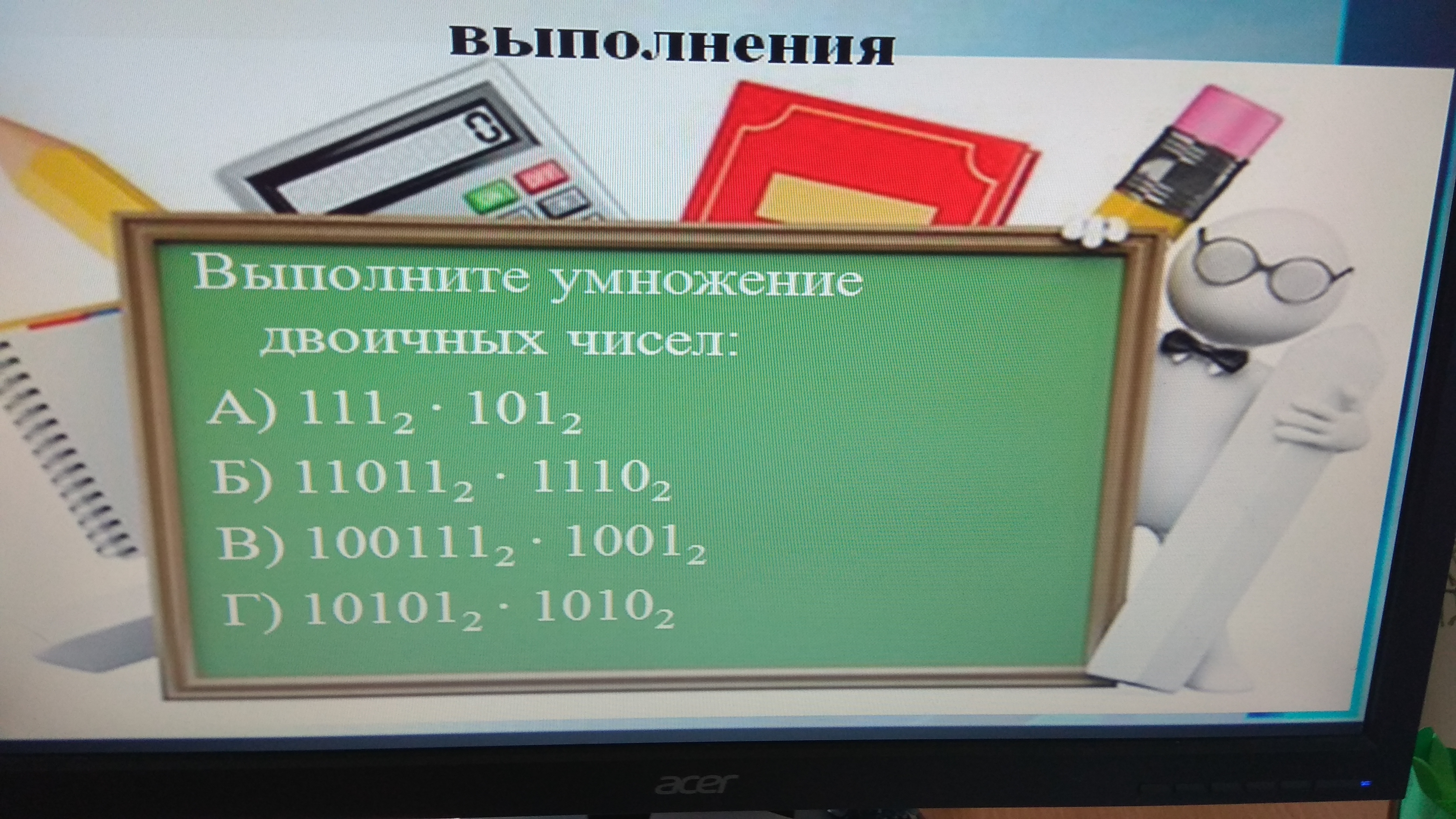 Помогите срочно решить сложение/вычитание/умножение двоичных чисел! Столбиком! Очень надо!!!