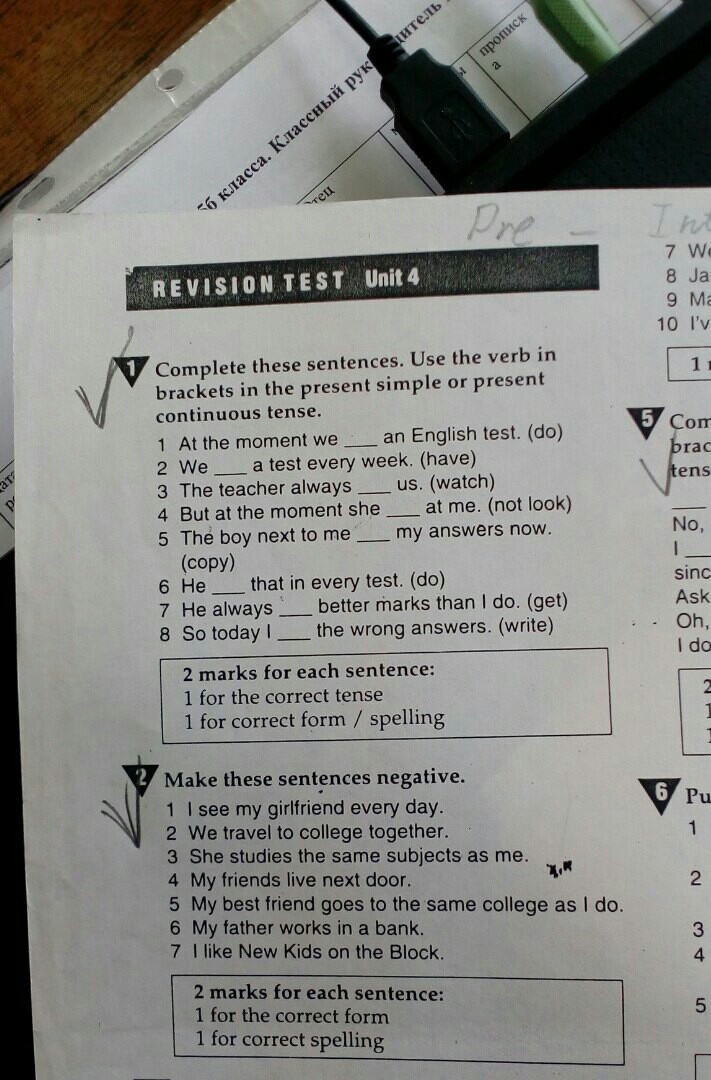 1) 1 we are doing 2 we have 3 watches 4 she is not looking 5 is copying 6 7 gets 8 wrote