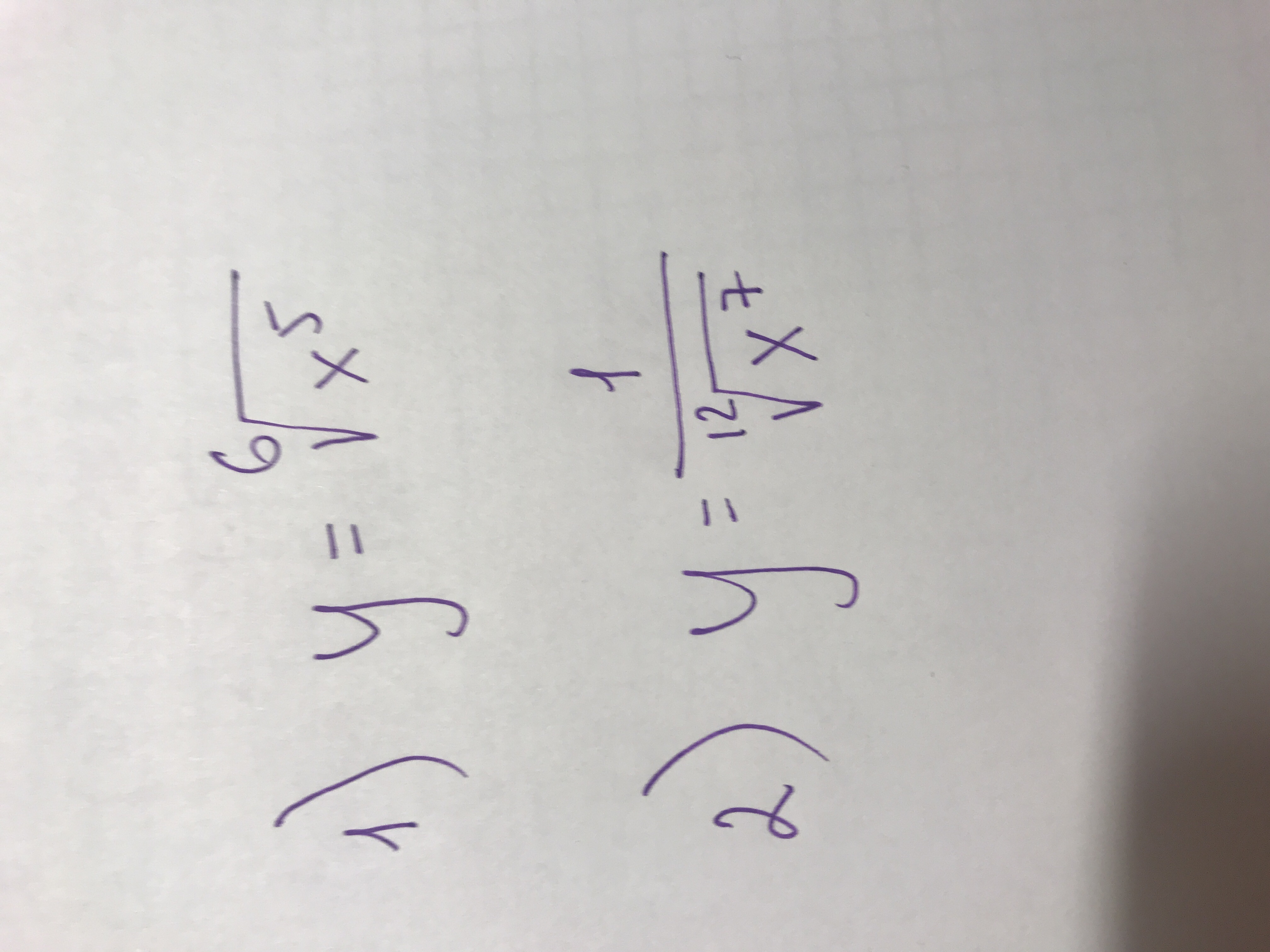 1. (sqrt[6]{x^{5} } )'=(x^{frac{5}{6} })' =frac{5}{6} x^{-frac{1}{6} }=frac{5}{6}sqrt[6]{x}